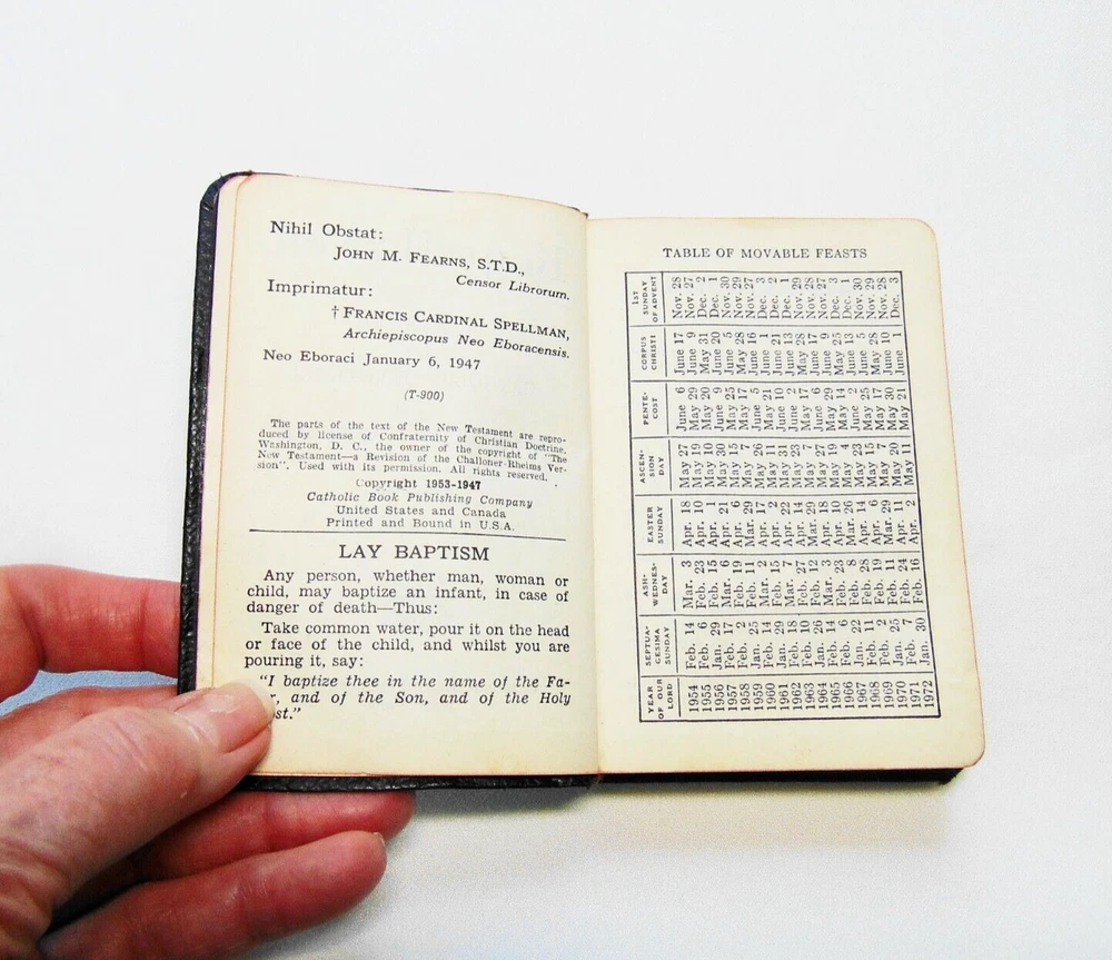 Vintage Jan 6,1947 Key of Heaven Catholic Prayer Pocket Size Bible Size: 3" x 4.5" x1" Leather cover Check photos for more detailed information