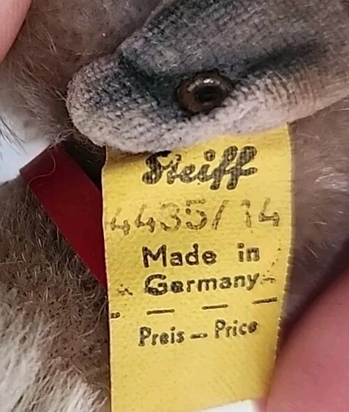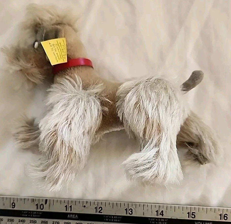 This vintage 1950's German Steiff gray jointed poodle dog #4435/15 is a perfect addition to any stuffed animal collection. This mini dog, under 6 inches, was manufactured in Germany and is made with high-quality materials. It comes with a collar and ear tag, making it a unique and authentic piece. The age level for this dog is wide, ranging from 8 to 17 years and up. It is suitable for anyone who loves dogs and wants to add a touch of vintage to their collection. This Steiff dog is a rare find and is perfect for collectors who want to add a touch of history to their collection.