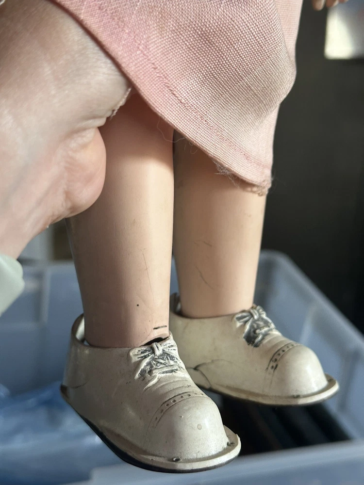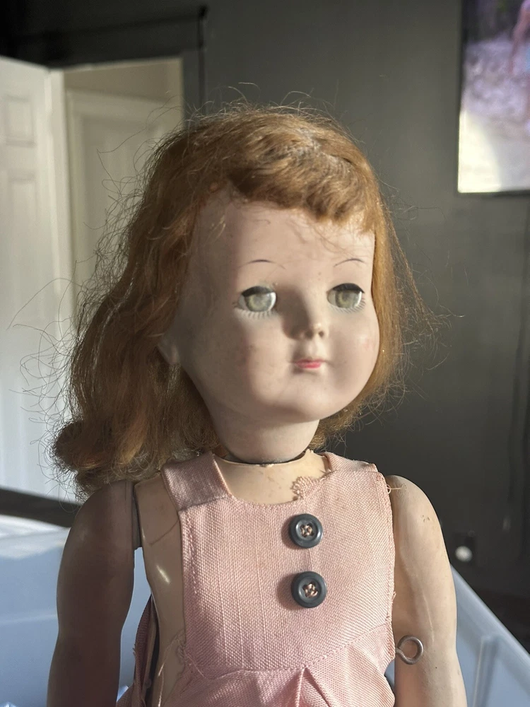 Vintage 1950s Mechanical Wind-Up Walking 18" Toy Doll - Tested & Working. Doll winds up and works, she’s just old and needs a little TLC. Please see photos for item condition.