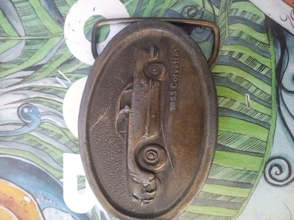 HomeVintage 1957 Chevy Corvette Oval Brass Belt Buckle Indiana Metal Craft Race CA19