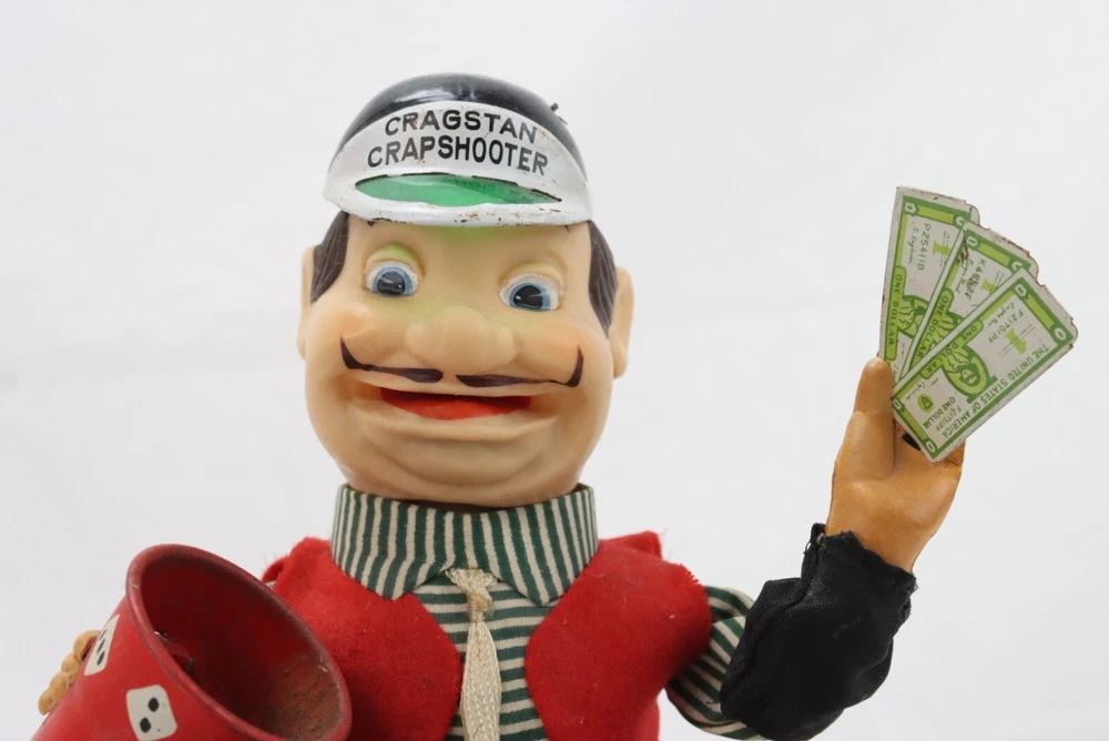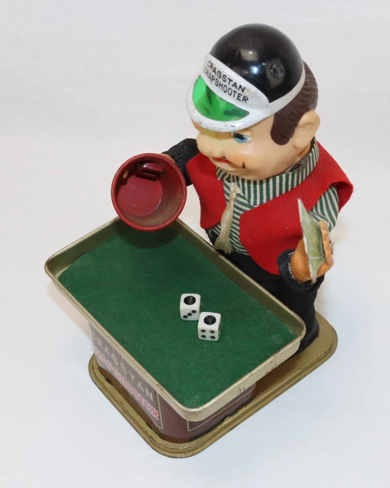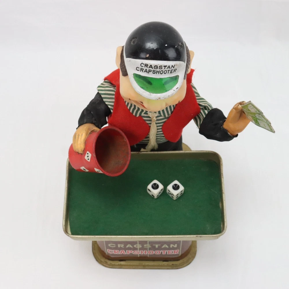 Vintage 1960s Cragstan Crapshooter Battery Operated Toy - Parts or Repair (Not Powering On) Includes original dice Repaired hand holding cards and arm sleeves Very good overall cosmetic condition, clean and odor-free! Not sure why it's not powering on. The battery compartment looks excellent. All considerations are visible in the photos provided. ITEM(S) COMES FROM A SMOKE FREE ENVIRONMENT. PLEASE LET US KNOW IF YOU HAVE ANY QUESTIONS, WE ANSWER EMAILS AS QUICKLY AS POSSIBLE. -BUY WITH CONFIDENCE- 100% MONEY BACK GUARANTEED If item(s) arrives defective, damaged, or not as expected it may be returned for a full refund within 30 days after receiving the item(s). Shipping fees will also be reimbursed if an error was made by seller. New items must be returned in the same condition as they arrived at buyer. Any opened or used products that were purchased as new will not be eligible for a refund or exchange. We must be contacted regarding the return as soon as possible after the item(s) is received. Please contact us first before filing a claim with eBay and before leaving negative feedback. We GUARANTEE customer satisfaction, and all emails are answered within 24 hours. -SHIPPING INFORMATION- We offer combined shipping on multiple items. We mail Monday through Friday and have a 1-day handling time. DOMESTIC SHIPPING: The shipping information section is located beneath the Buy It Now icon. Please select between the shipping options available. If you have a special request for a shipping service that is not available for selection, please let us know and we will be happy to fill your request. WORLDWIDE SHIPPING: If you live outside the U.S., click on your country. International orders may be subject to additional Customs fees. Please check with your country's Customs policies before placing an order. All international buyers are fully responsible for all additional fees your order may incur.
