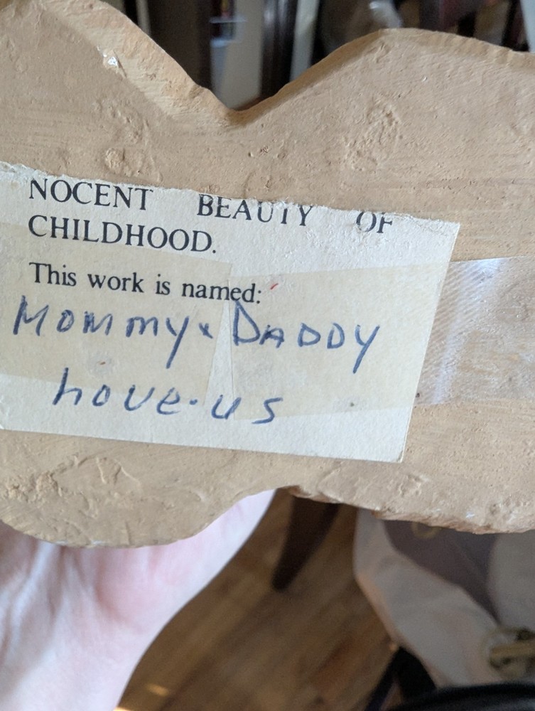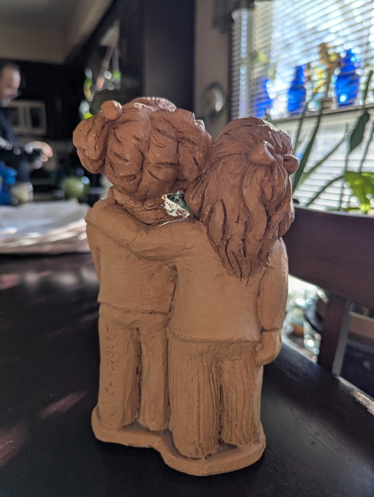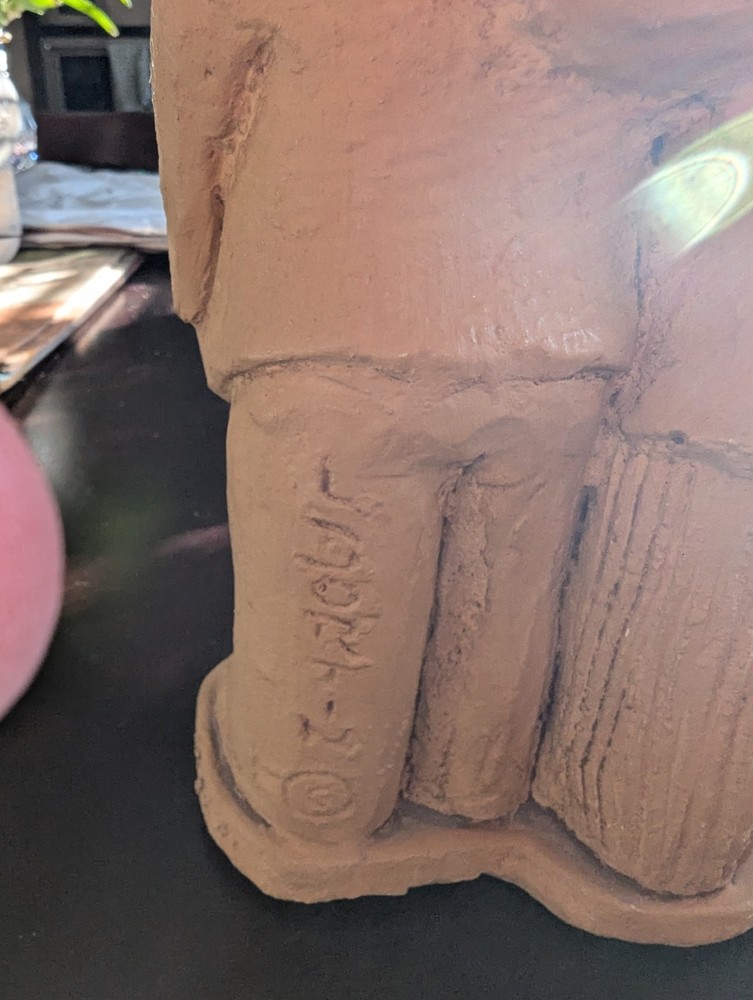 Include certificate of authenticity and title. This vintage sculpture by Lee Bortin, titled "Mommy & Day Love Us," is a charming piece depicting two girls with their mother. The sculpture is made of clay and is hand-carved, with a production technique of clay carving. It is signed by the artist and comes with a certificate of authenticity (COA). Measuring 12 inches in height and 5 inches in width, this medium-sized sculpture was produced in the post-war period (1940-1970) in Chicago, USA. It is an original piece and is in excellent condition. The sculpture is perfect for collectors of art and sculptures, as well as those who appreciate the beauty of children in art.