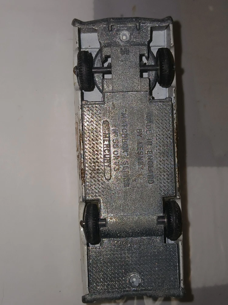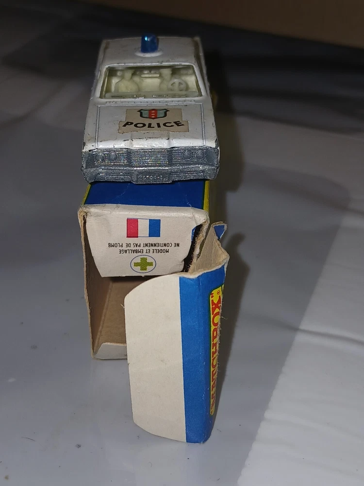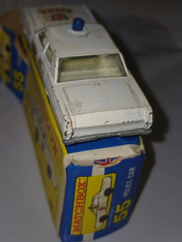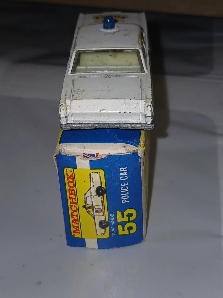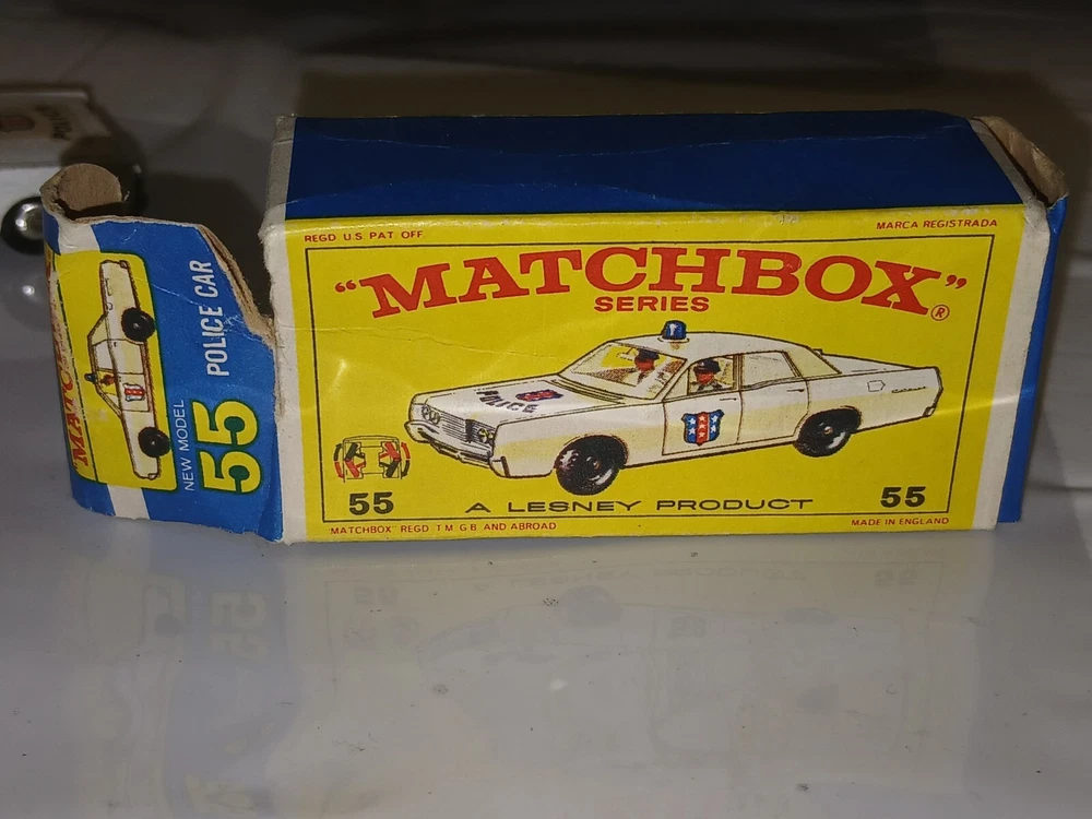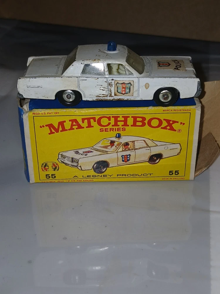 Please note the pictures for condition. What you see is what you get! This vintage 1960s Lesney Matchbox Series #55/73 White Mercury Police Car is a diecast toy vehicle in 1:64 scale. It belongs to the iconic Matchbox 1-75 series and features a Mercury car model. It is a collectible piece from the 1960s, showcasing the quality and charm of classic Matchbox cars.