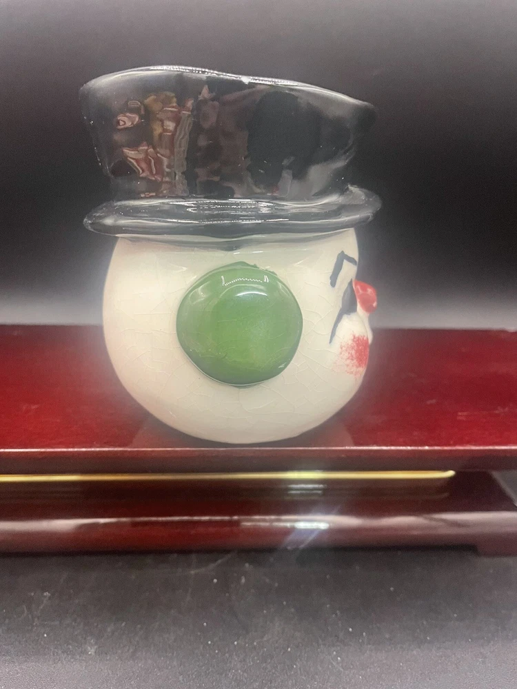 This vintage 1961 mug features Frosty the Snowman, a beloved Christmas character. With a capacity of 8 oz and a medium size, this mug is perfect for enjoying hot cocoa or other festive beverages during the holiday season. The multicolor design and handmade construction make it a unique addition to any collection. Made from ceramic and porcelain, this mug is durable and long-lasting. It was manufactured in 1961 and is part of the Collectibles, Kitchen & Home, Dinnerware & Serveware, and Mugs categories. The set includes a cup and is perfect for Christmas occasions. Add this one-of-a-kind piece to your collection today! Cup measure approximately 4 inches tall times 3 inches diameter . Some light crazing of the glaze present on the mug please reference pictures.