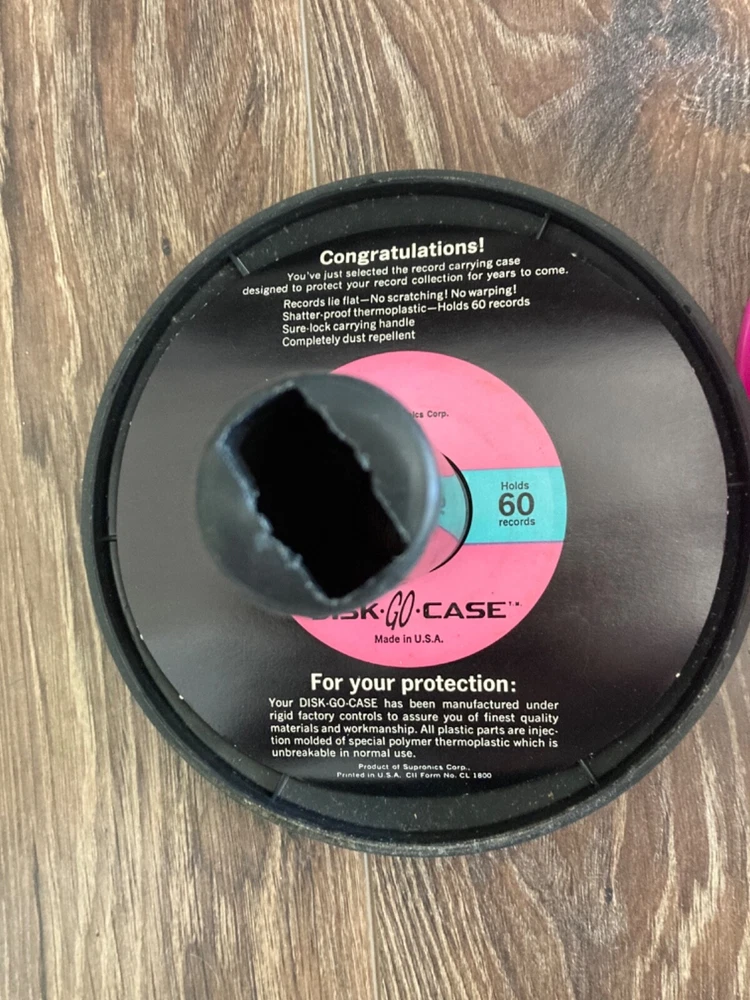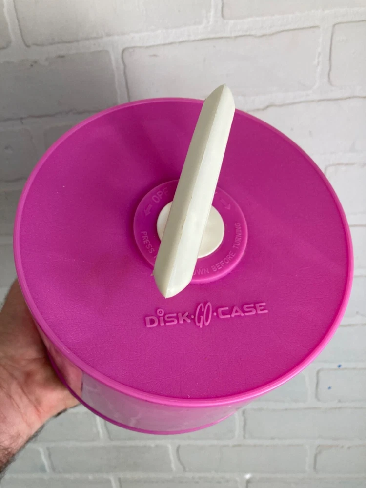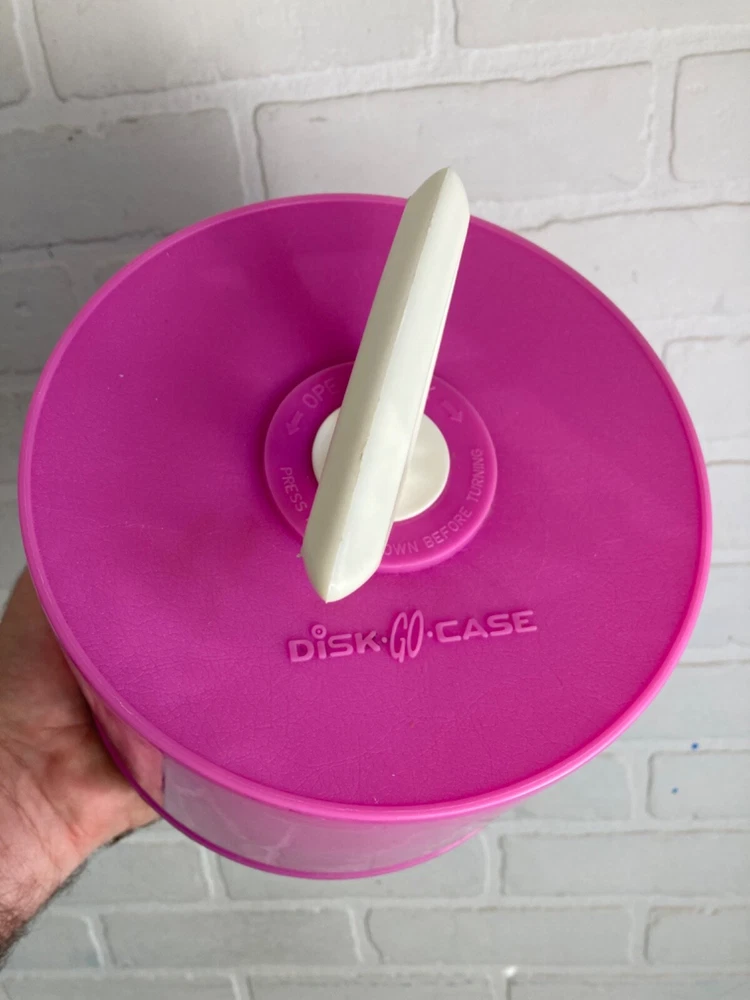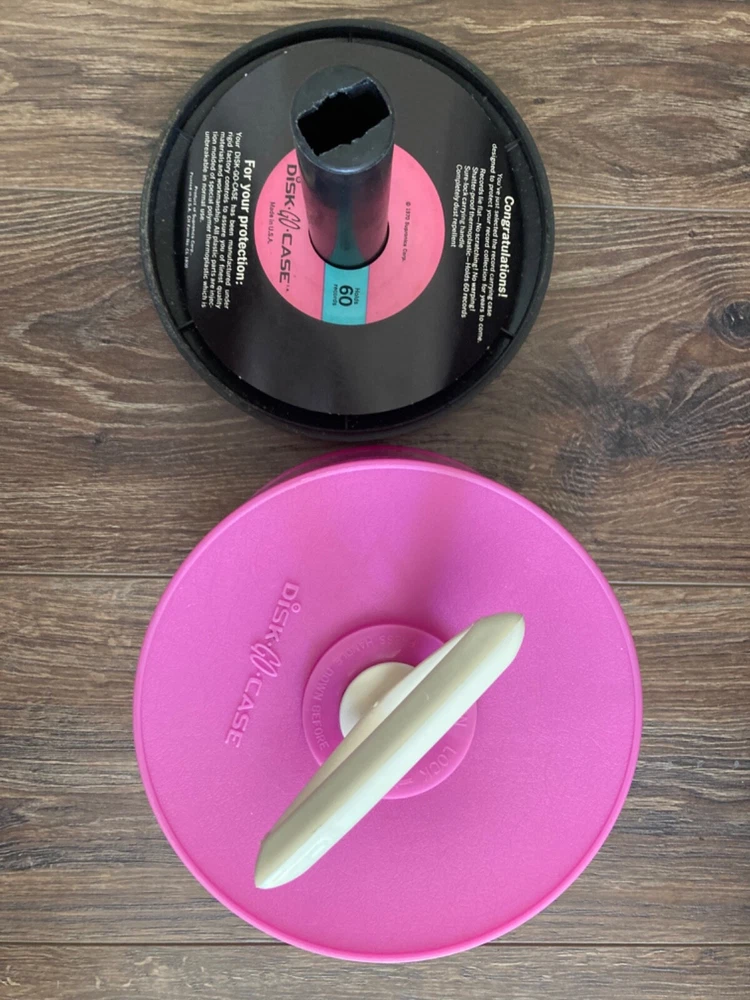 HOOKED-ON-VINTAGE IS SO PLEASED TO OFFER THIS VERY NICE DISK-GO-CASE Vintage 1966 Disc Go Case 45 RPM VINYL 7” Record Carrier Pink hot USA VTG A+ DISK-GO-CASE. USA MADE VINTAGE 1966 MADE IN U.S.A. NEAR NEW VINTAGE. SOLD AS SHOWN IN THE SUPER-SIZED PHOTOS. Please check our Ebay shop, Hooked-On-Vintage, for more great vintage and antique items! *** We combine ship :-)