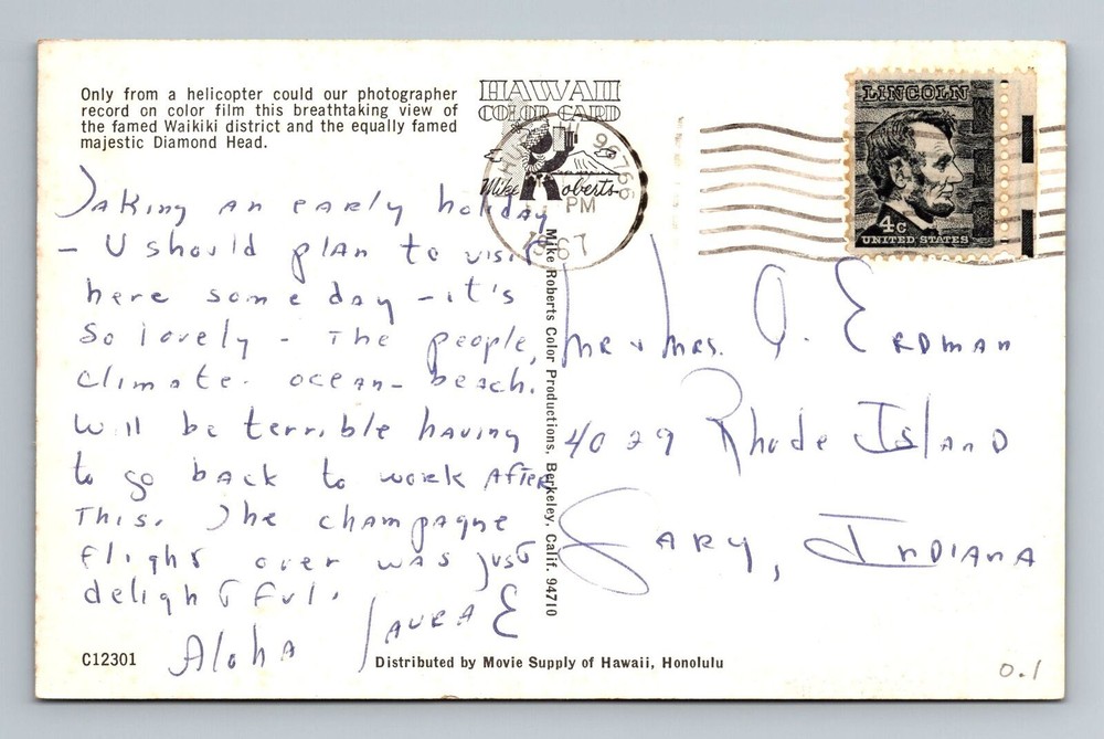 Vintage 1967 Aerial Waikiki HI Hawaii Diamond Head Postcard