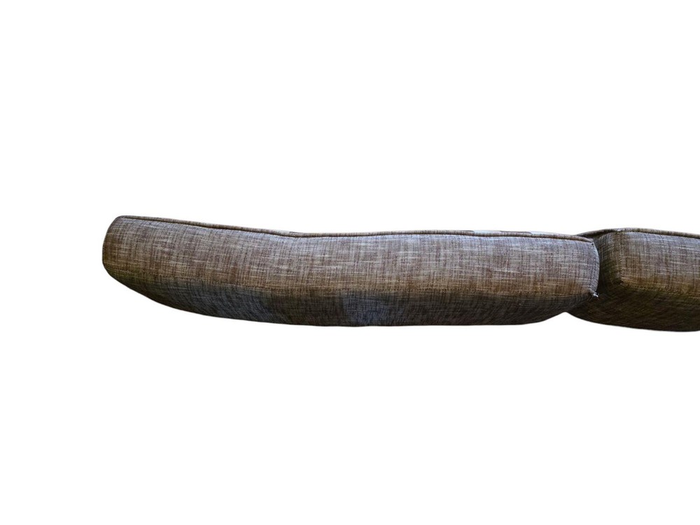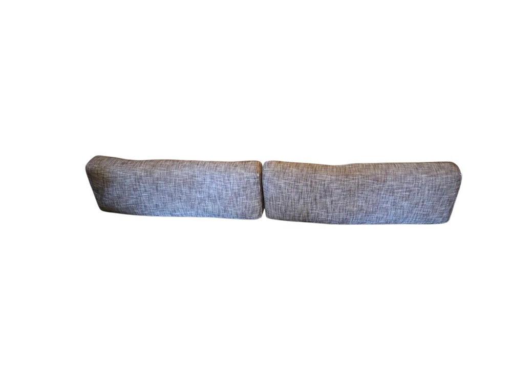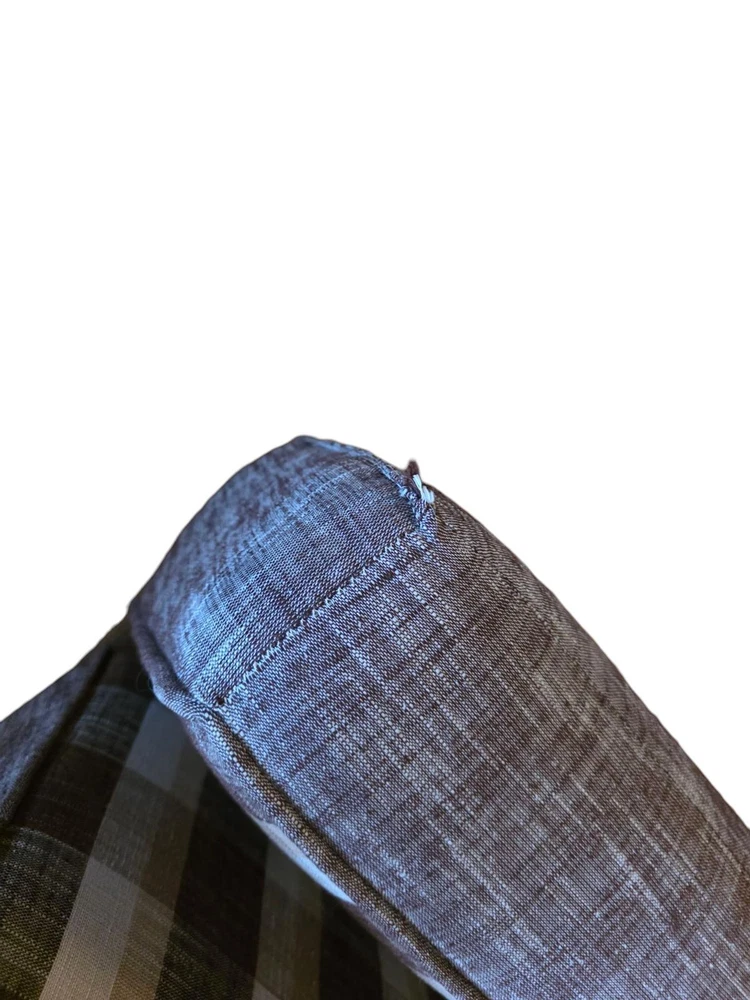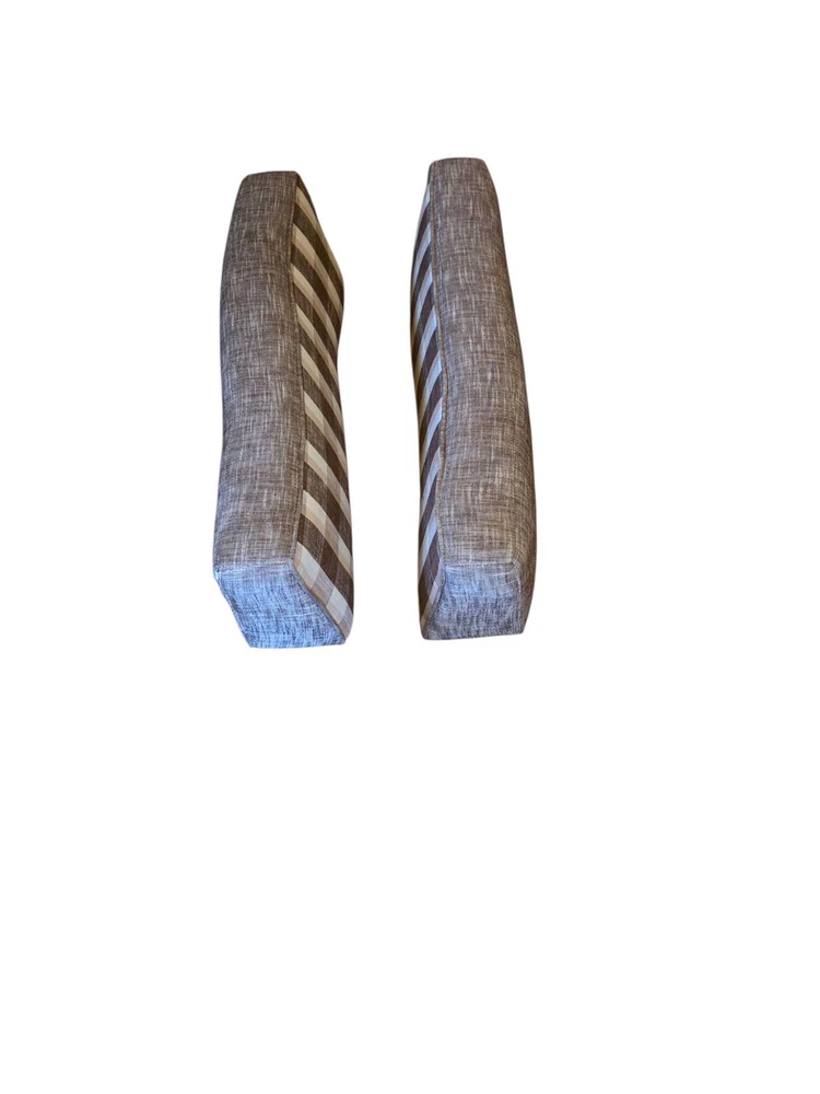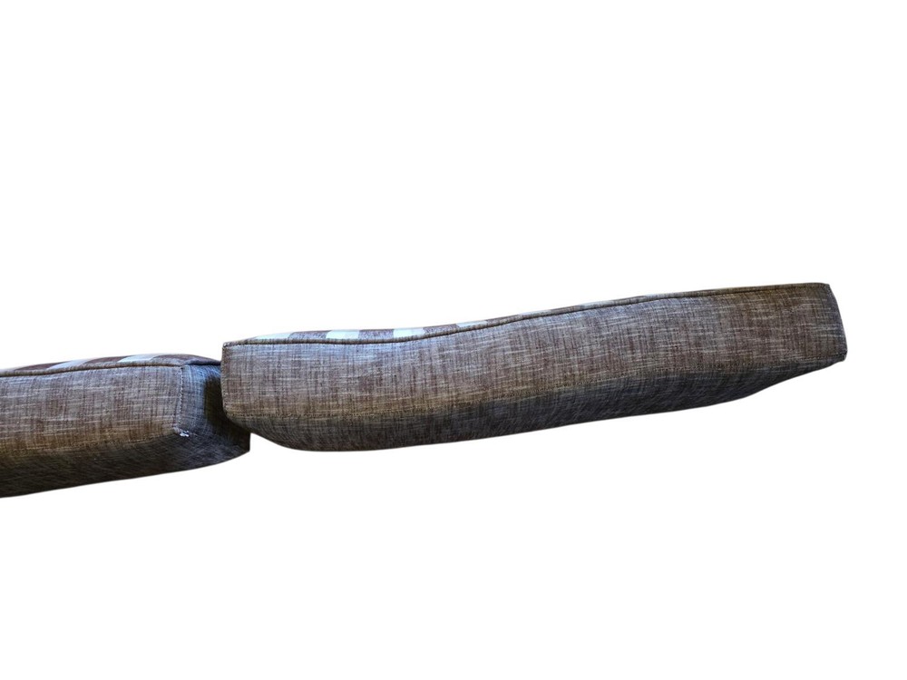 Pair of Vintage 1970s Wedge Backrest Cushions – Brown Plaid Upholstery – 35x11x7” Add some retro charm to your daybed, bench, or platform couch with this pair of original 1970s wedge-back cushions. Featuring a brown plaid front panel with neutral taupe and cream tones, and a textured brown woven fabric wrapping around the rest. Cushions are shaped in a comfortable wedge design, ideal for leaning against on a low-profile seating piece or retro modular sofa. Measurements (each cushion): Width: 35" Height: 11" (at tallest point) Depth: 7" (at base) Condition: Good vintage condition with expected age-related wear. Both cushions are structurally sound. Minor imperfections include small areas of fraying and thread loss at two corners (see last photos), but overall presentation is clean and usable as-is.