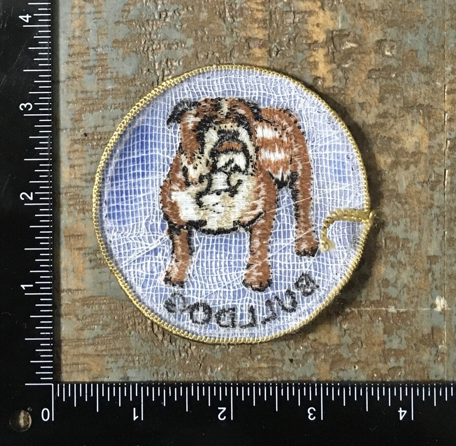 Vintage 1970s English Bulldog Breed Embroidered Iron-On Pet Patch