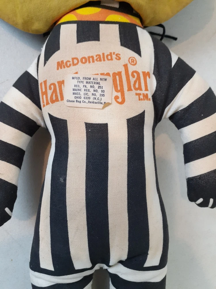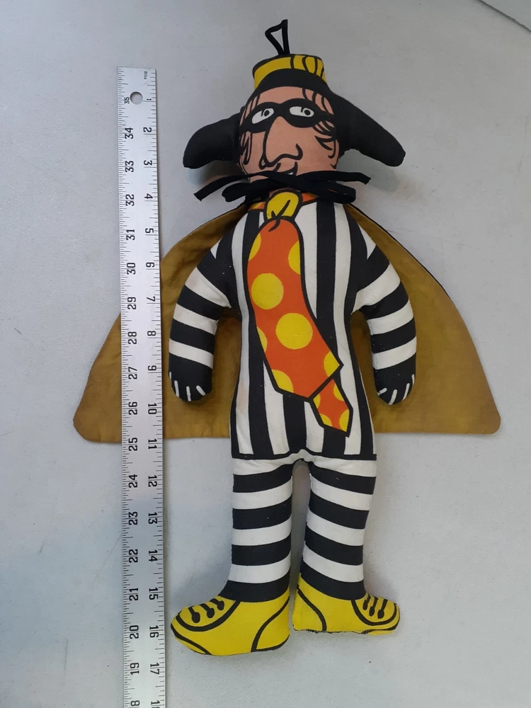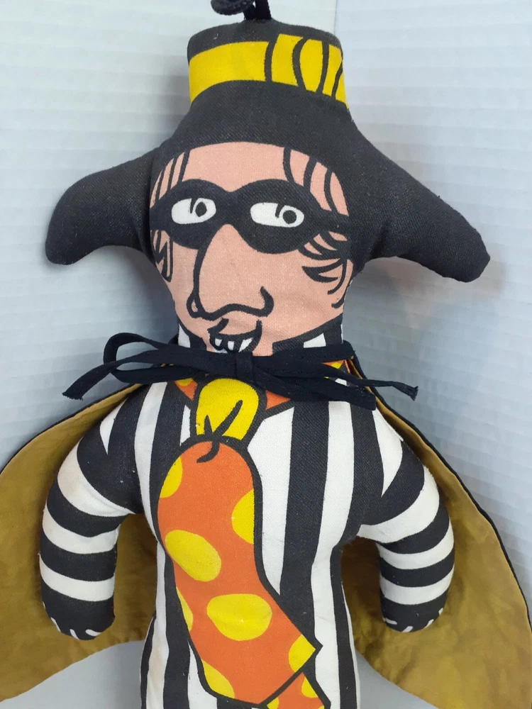 Preowned Vintage 1970s McDonald's Hamburglar Stuffed Plush Cloth Doll 16" Toy Chase Bag Co. Please read condition description item shows minor signs of normal surface/cosmetic wear, age, fade, marks, etc,, Few spots on cape Please see all photos for condition Smoke & pet free environment. Color in pictures may vary slightly. I try to get the picture color as close as possible. Shipping for United States includes delivery confirmation! Purchasing more than one item can save you a lot in shipping. Ask ahead and overage can be refunded when I'm able to ship together. Please ask questions New Listings Daily Inv#1224-0PJ-99910-plushC