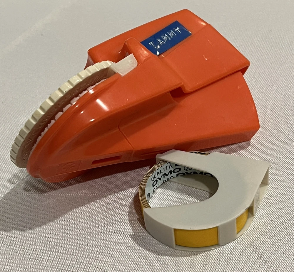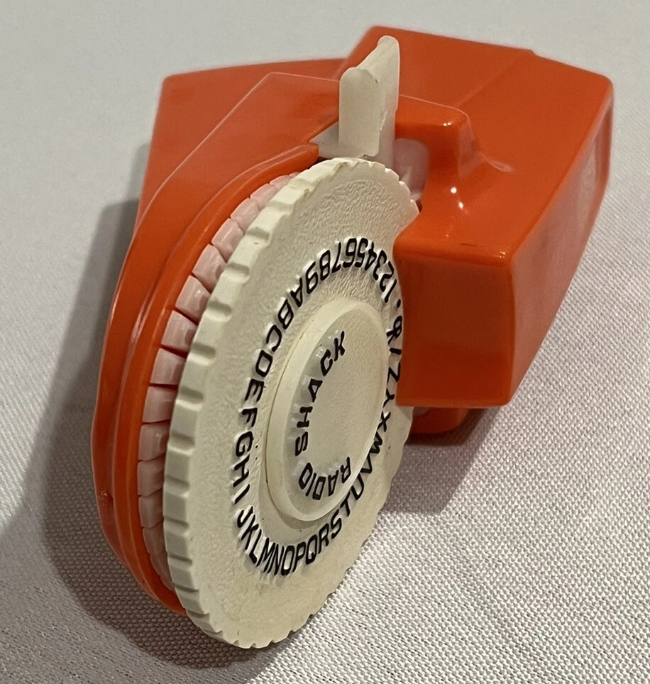 Vintage 1970s Orange Radio Shack Handheld Label Maker w/ Dymo Label Roll.