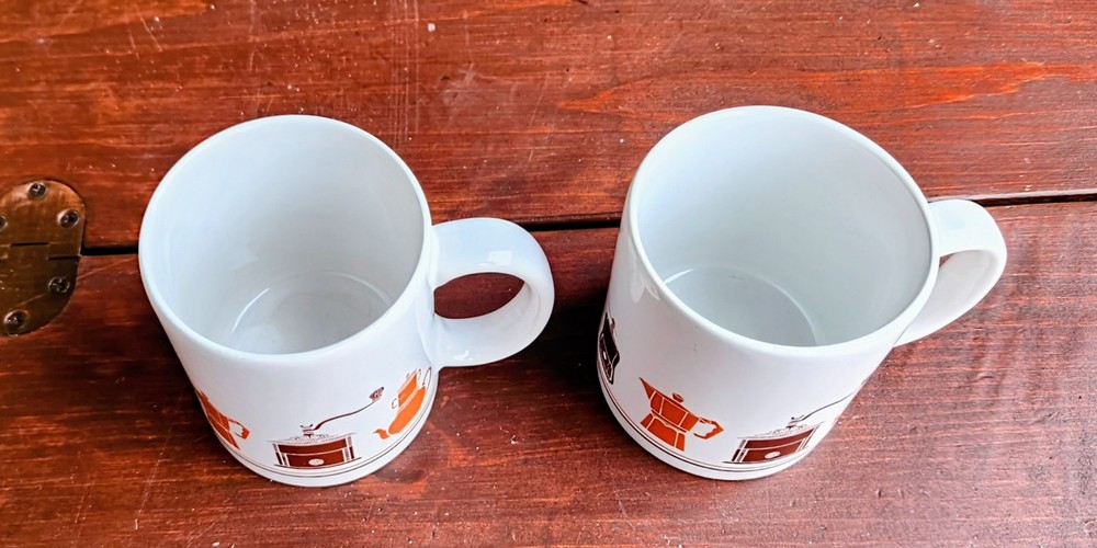 Here's 2 mugs. Vintage 1970s American coffee grinder/ percolator in original coloring. No cracks or chips