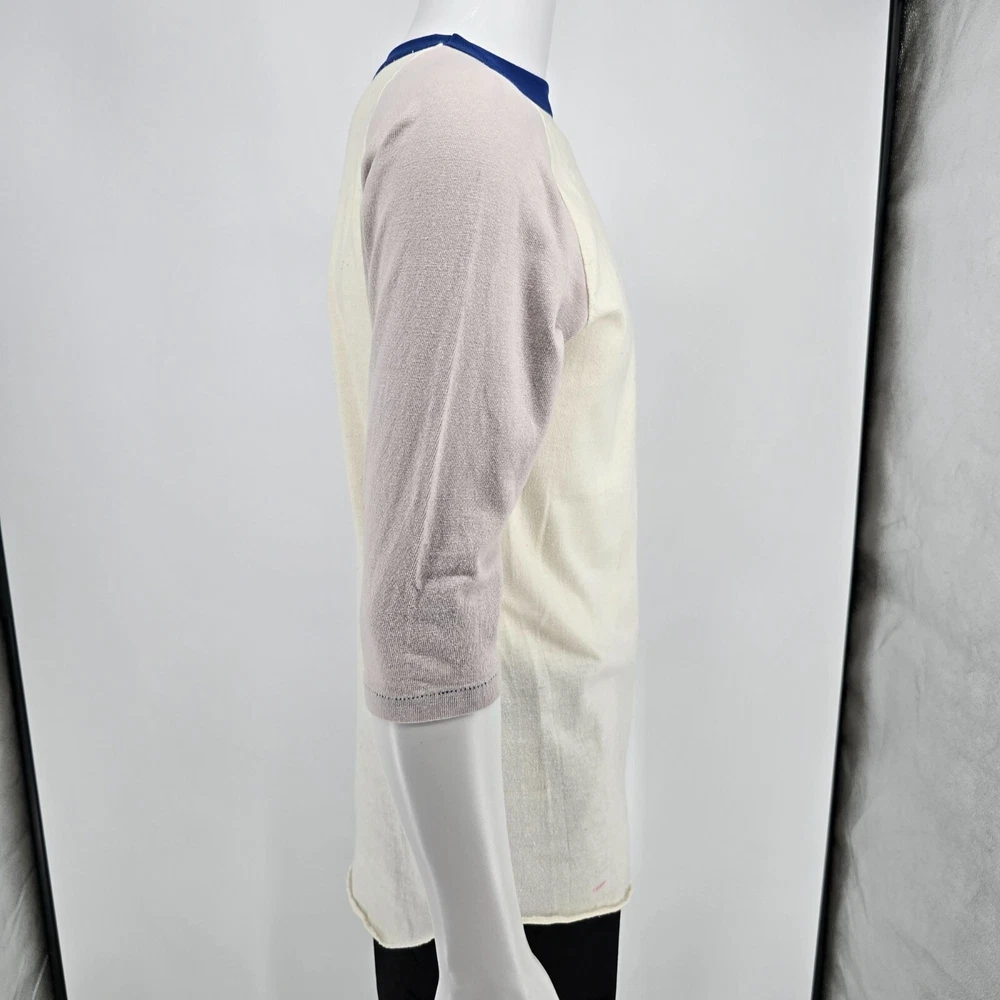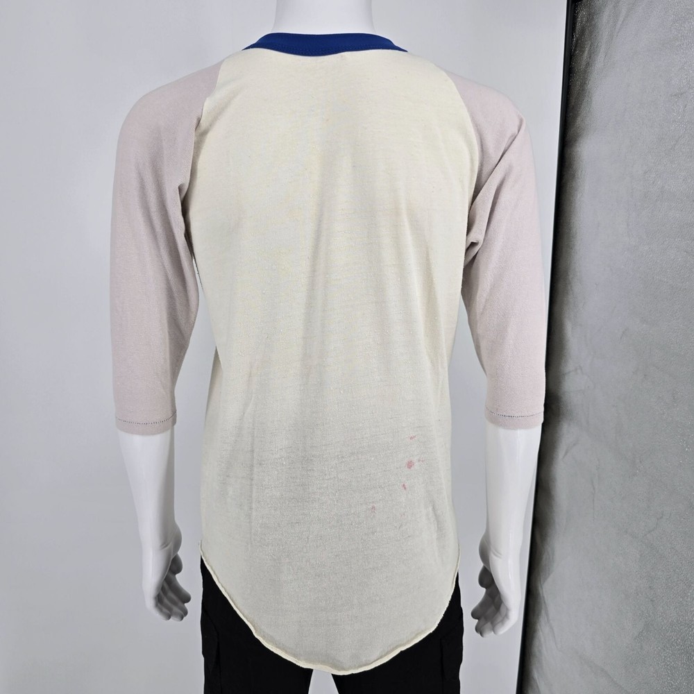 ๐น Item Details: Brand: Russell Athletic Material: 70% Cotton, 30% Polyester Color: Natural/Beige Body with Light Taupe Sleeves and Blue Ribbed Collar Decade of Manufacture: 1970s Country of Manufacture: USA Notable Features: Ringer collar, curved hem, contrasting three-quarter sleeves, single stitch cuffs ๐น Condition Notes: Fair/distressed used vintage condition. Significant spots of yellow and red staining on both the font and the back. Significant areas of discoloration throughout. Moderate to heavy fabric wear throughout. See photos. ๐น Size Notes: Vintage Tag Size: Large Modern Measured Size: Medium ๐น Measurements (Approximate): Chest (pit to pit): 39 inches Collar to Hem: 29 inches at lowest point of scoop, 25 inches at highest part of scoop at hips ๐น Shipping & Returns: Ships worldwide from Lexington, KY. Ships within 3 business days of purchase. Returns accepted within 60 days for domestic orders and 30 days for international orders.
