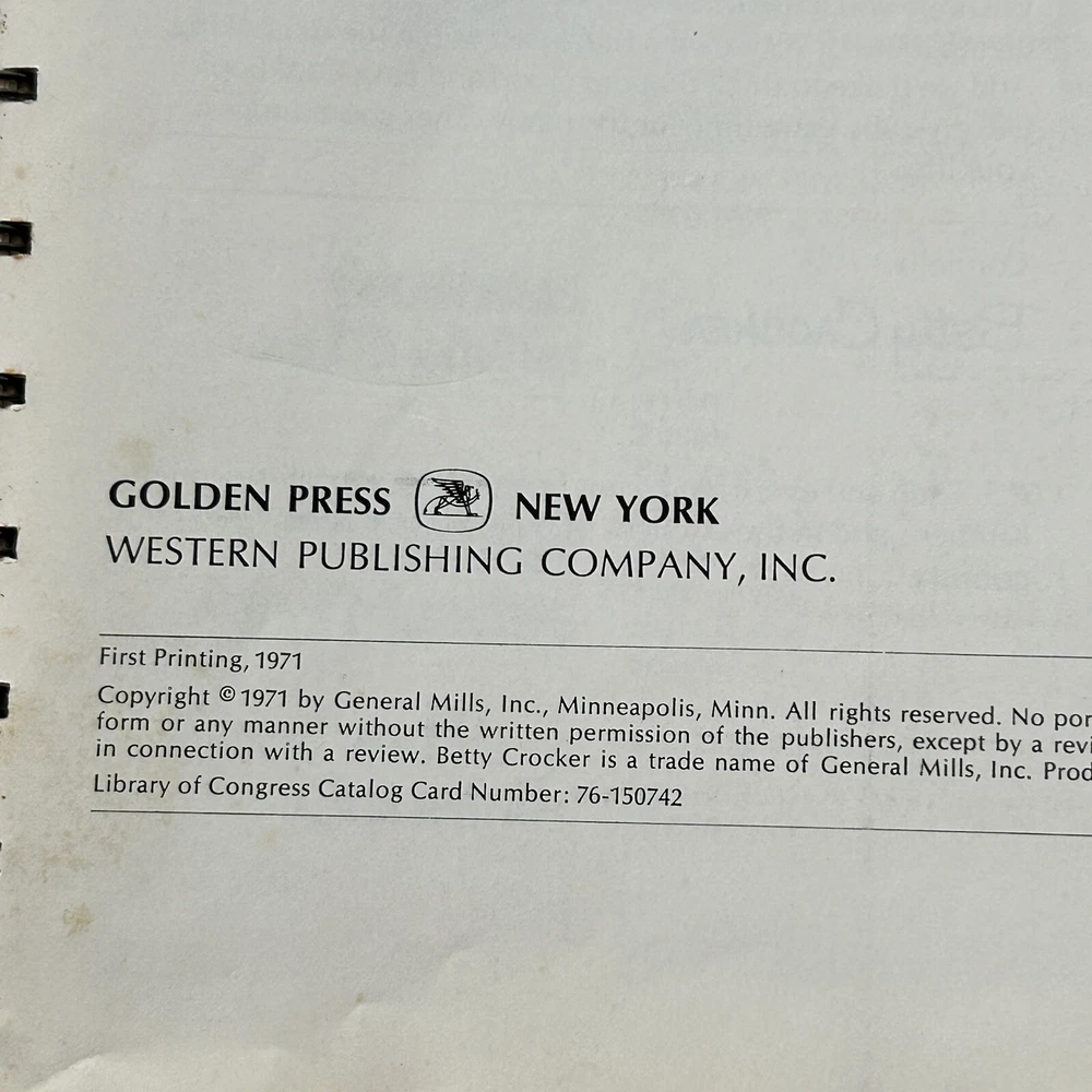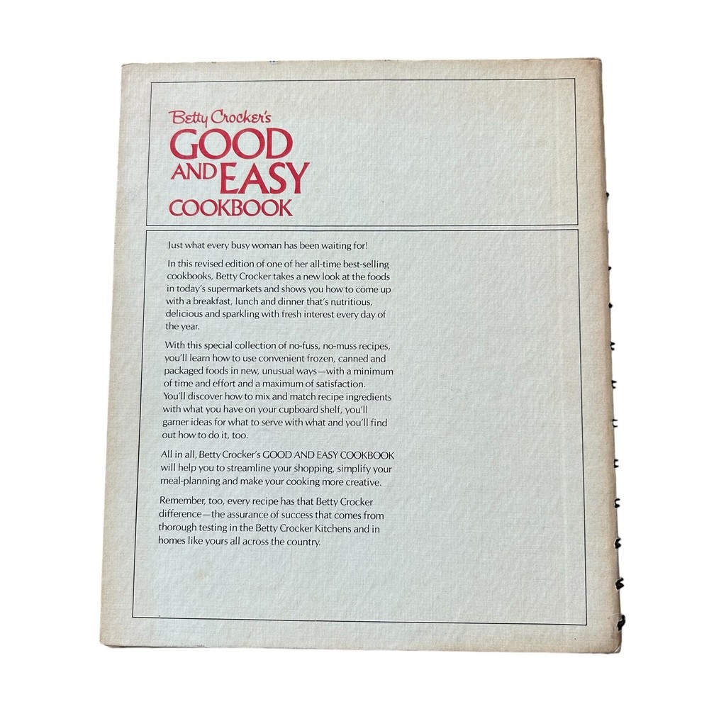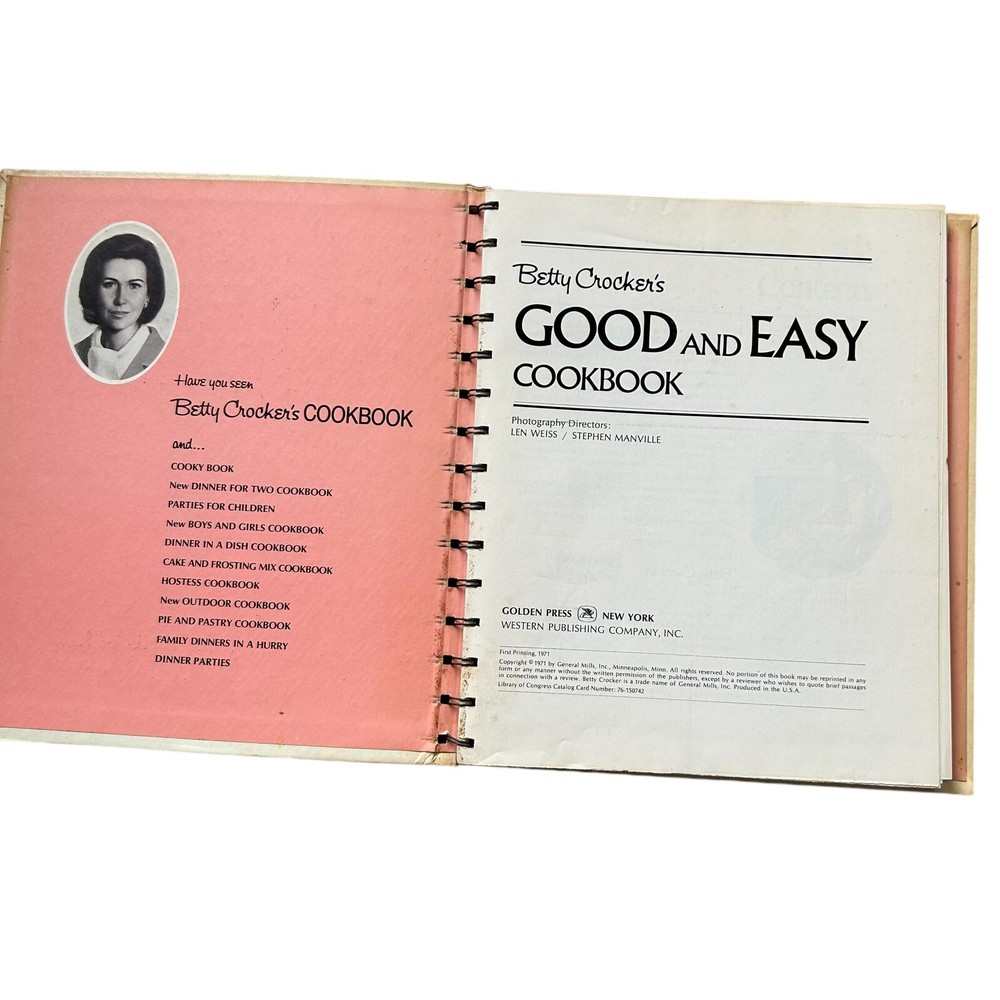 Vintage 1971 Betty Crocker's Good And Easy Cookbook Golden Press 1st Printing. Good pre-owned condition with normal vintage wear, cover and pages have some discoloration, corners have wear, see photos for details. (107)