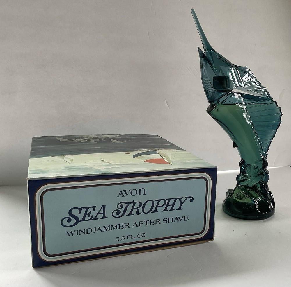 The Vintage AVON SEA TROPHY Swordfish 1972 with Box is a collectible shaving item from the United States. Made by Avon, this unique aftershave features a nautical theme with a swordfish design, adding a touch of vintage charm to any collection. The fact that it comes in its original box makes it a sought-after piece for enthusiasts of vintage shaving collectibles. See pictures for details Comes with original box, carton and decanter Shipping next business day, via ground service only
