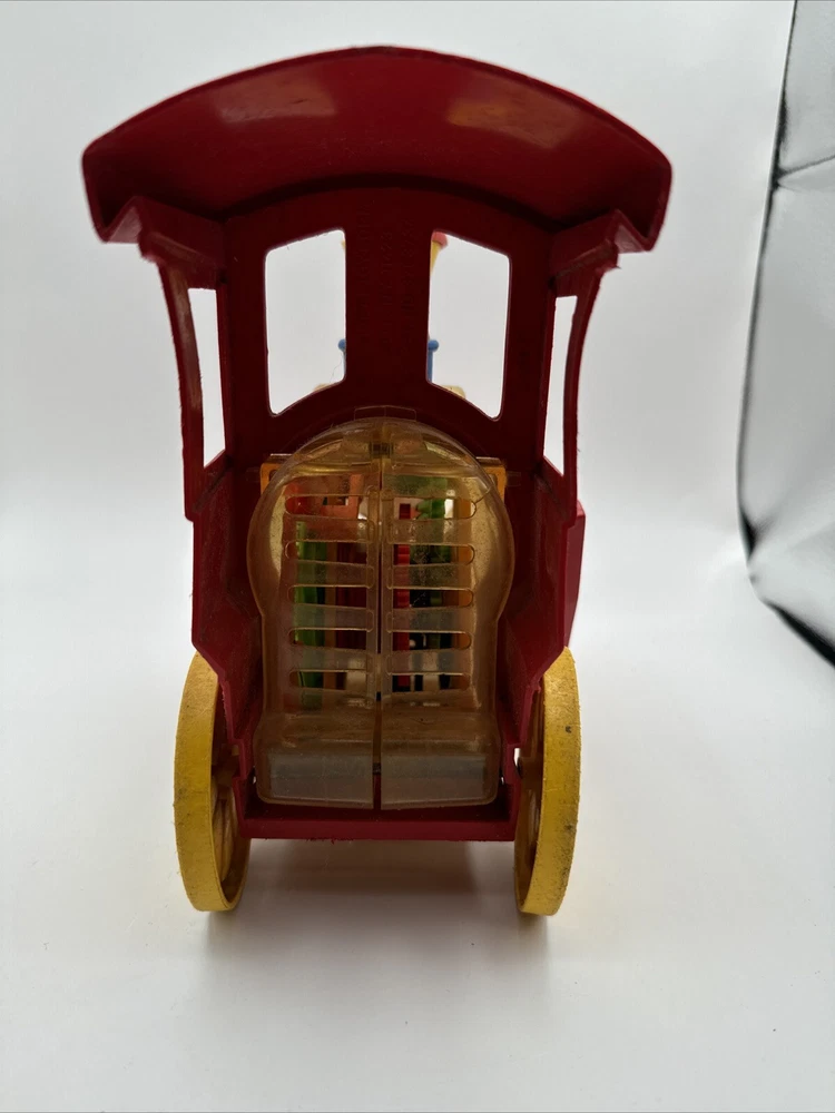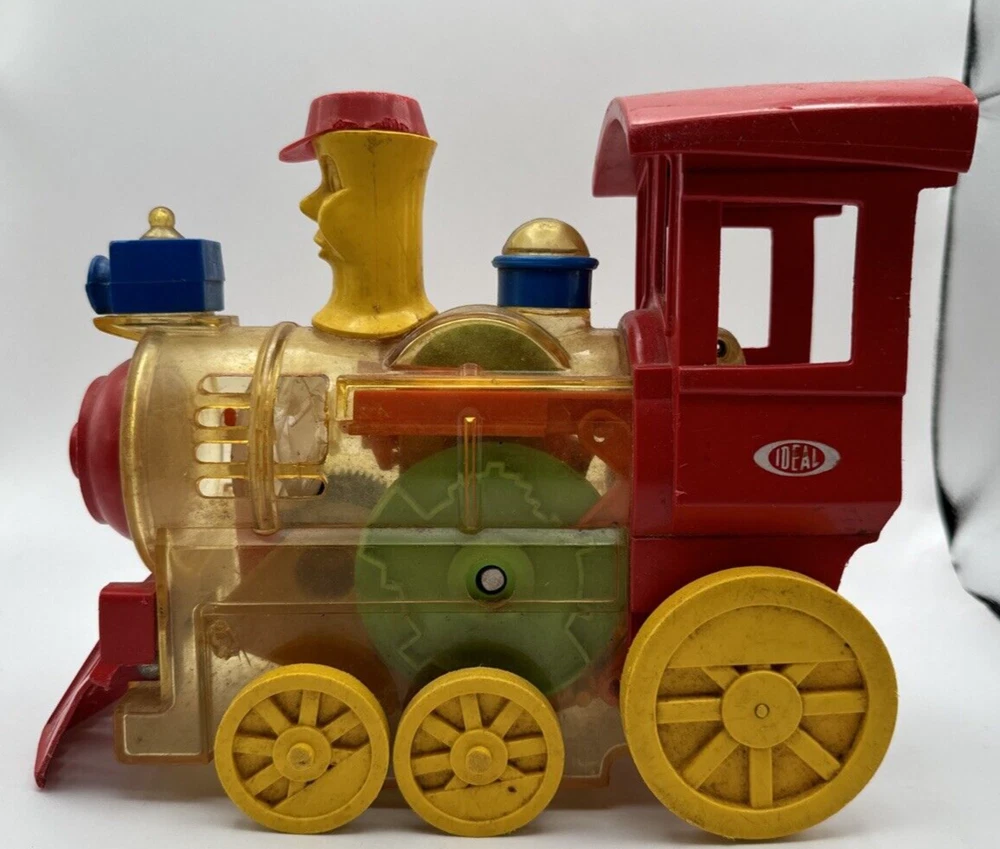 Vintage 1974 Ideal Toys Lil Toot Wind Up Whistling Train Pre-owned. Some discoloration, dirt, part of front broken as shown. Wind up works, didn't hear a "whistle". See pictures.