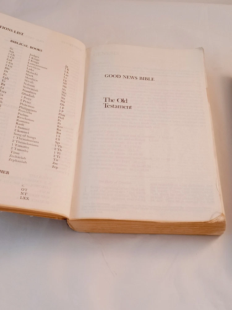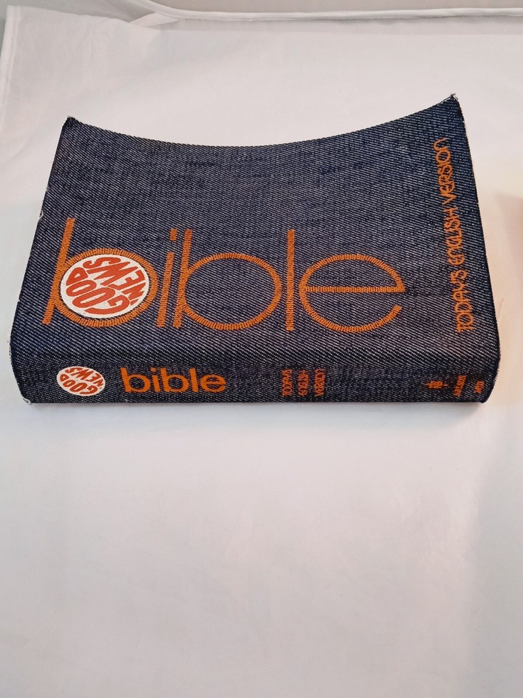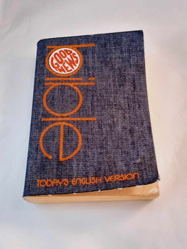This vintage denim cover Bible is a must-have for any collector or lover of the Bible. Written in today's English by a group of mixed authors, this paperback book titled "Good News for the Modern Man" offers a fresh take on the Bible's teachings. Published by Thomas Nelson Inc in 1972, this book is a timeless piece that will stand the test of time. The Bible's attributes include its publication year, format, language, and author. It also covers various topics and eras, making it a relevant piece for anyone looking to connect with the Bible. This Book is perfect for those who are seeking a deeper understanding of the Bible and its teachings.