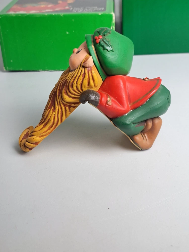 Vintage Hallmark 1979 ELF WITH BEARD Stocking Hanger is in Good Vintage Condition. Cute!