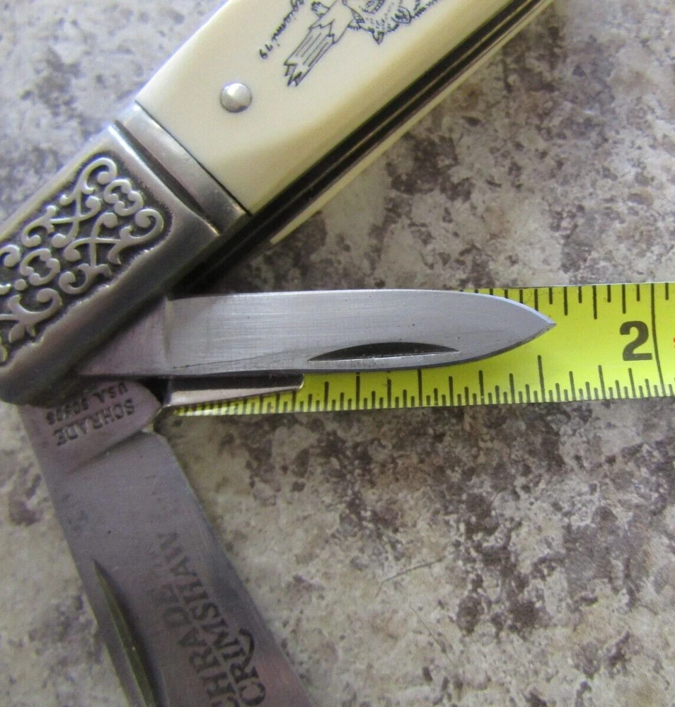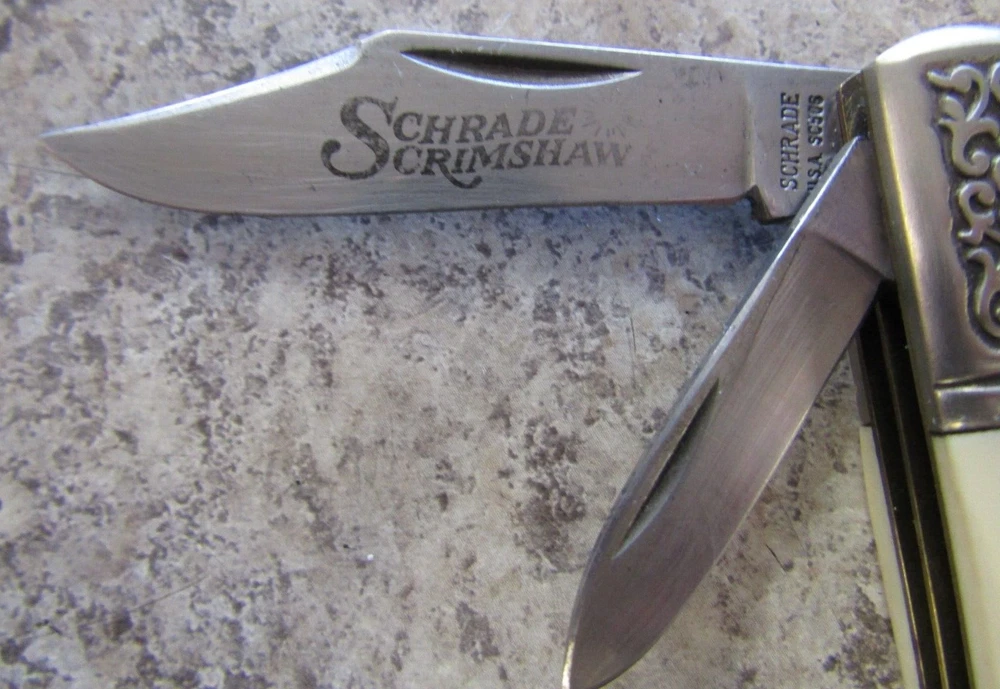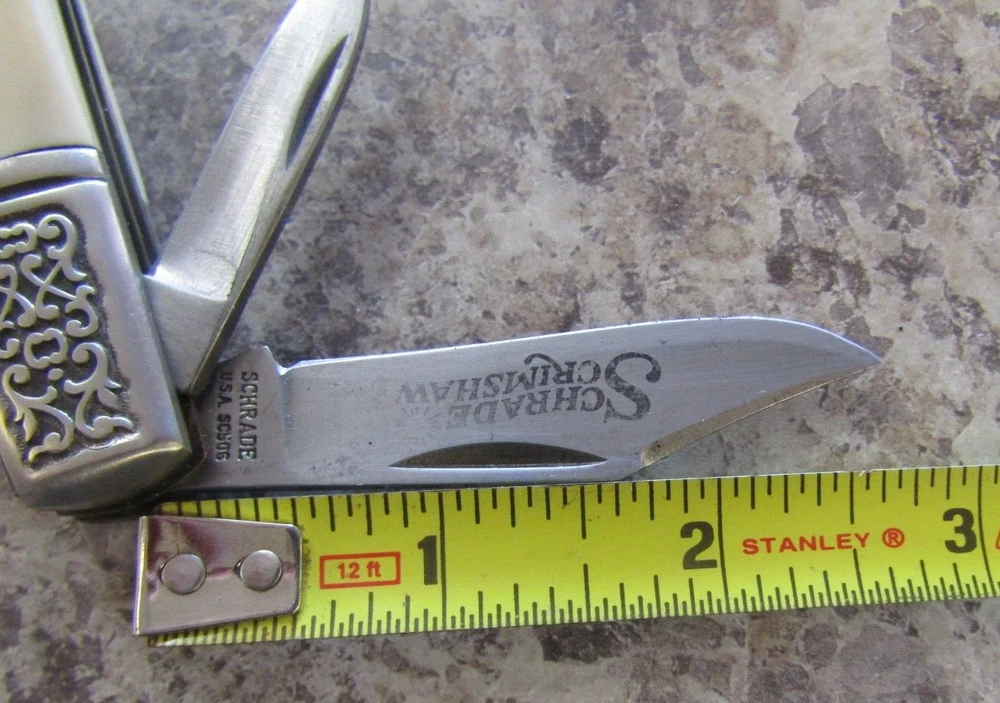 Model:SC506Brand:Schrade USAColor:CREAMNumber of Blades:2Country of Manufacture:United StatesBlade Type:Clip Point, PenCountry/Region of Manufacture:United StatesOpening Mechanism:ManualType:PocketknifeHandle Material:DELRIN