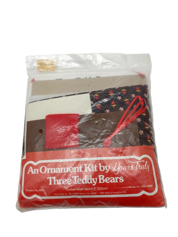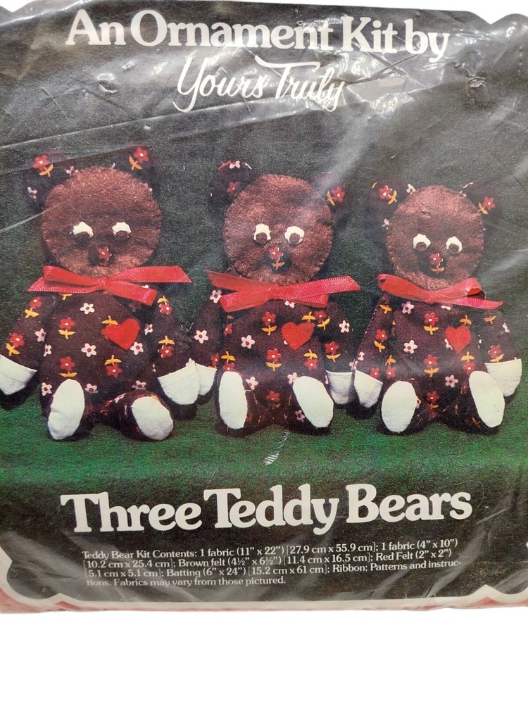 Vintage 1980 Three Teddy Bears Christmas Ornament Kit By Yours Truly Sealed.