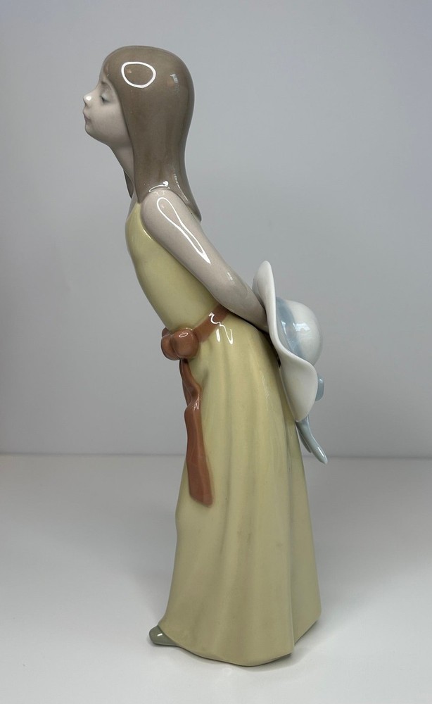 Vintage 1980s Lladro Porcelain Prissy Coiffure Girl Figurine with Straw Hat 5010