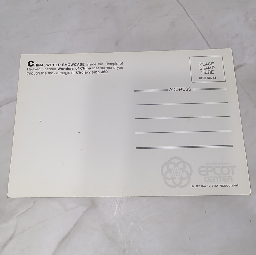 This vintage Disney postcard instantly transports me back to the magic of EPCOT's early days! The China pavilion looks absolutely stunning, and it's such a nostalgic treasure for any Disney fan's collection.