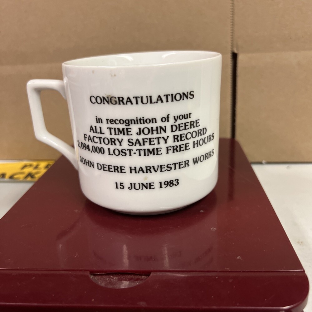 Vintage 1983 John Deere Harvester Works Safety Record Employee Award Mug
