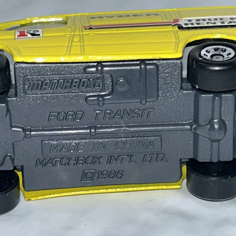 Age Level:3-4 Years, 12-16 Years, 17 Years & UpVehicle Year:unknowngtin13:Does not applyCharacter Family:RyderColor:YellowMaterial:DiecastYear of Manufacture:1986Gender:Boys & GirlsVehicle Make:FordUPC:Does not applyScale:1:63Theme:RyderSeries:MatchboxCustomized:NoRecommended Age Range:Adult CollectorAutographed:NoBrand:MatchboxModel:TransitFeatures:Limited Edition, CollectorCountry/Region of Manufacture:UnknownVehicle Type:Delivery Truck