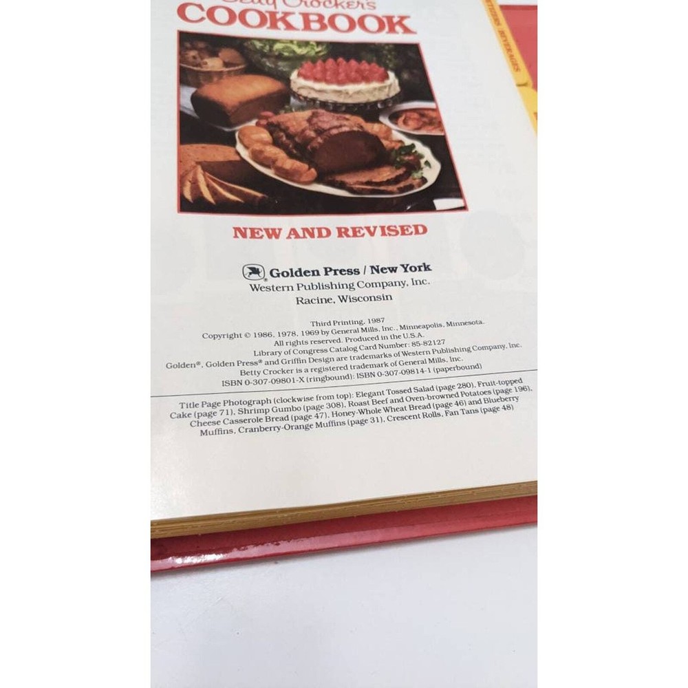 Betty Crocker's Cookbook New And Revised 3rd Printing 1987 Vintage Spiral Bound Hard Cover Glossy In great shape. We ship daily.