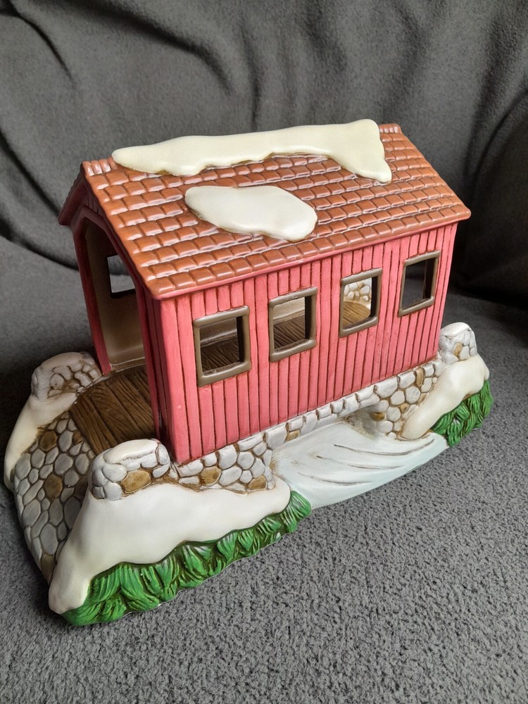 This rare vintage Lefton Colonial Village Sweetheart's Covered Bridge is a must-have for any collector. The bridge is beautifully hand-painted with a multicolor finish and features a colonial style that adds a touch of elegance to any room. It was manufactured in 1988 and is made of high-quality porcelain material. The bridge measures 10 inches in length and 6.5 inches in height, making it a large and impressive piece. It is part of the Colonial Village collection and is an original, not a reproduction. The bridge comes from China and is perfect for any occasion, especially Christmas. The Sweetheart's Covered Bridge will make a great addition to your Christmas Village collection.