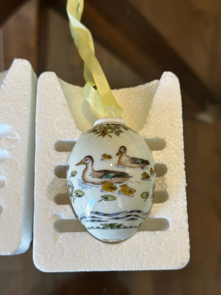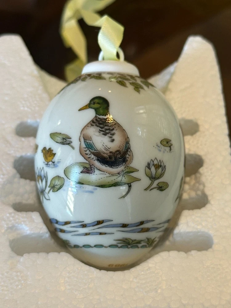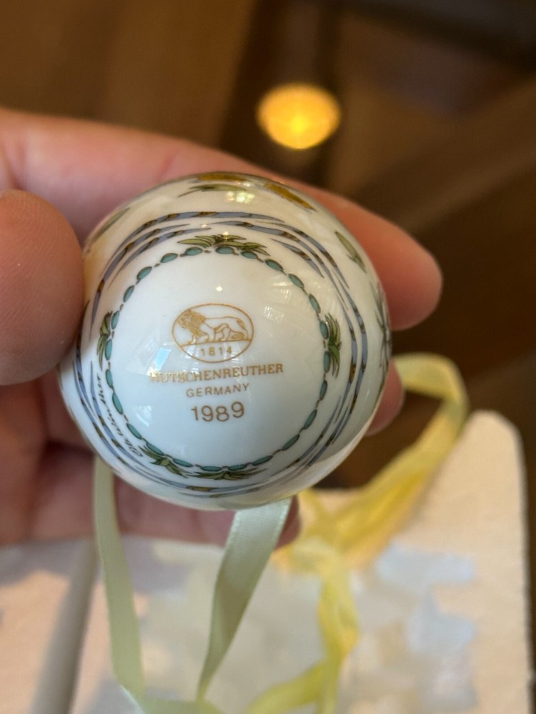 Add a touch of vintage charm to your holiday decor with this beautiful Hutschenreuther porcelain egg ornament from 1989. Crafted with the utmost care and attention to detail, this ornament features a stunning design that is sure to catch the eye of anyone who sees it. Made from high-quality porcelain, it is durable and will last for years to come. This ornament comes with its original box and is an original piece, not a licensed reproduction. It is perfect for collectors and those who appreciate unique, one-of-a-kind items. Add it to your collection of ornaments or give it as a gift to a loved one.