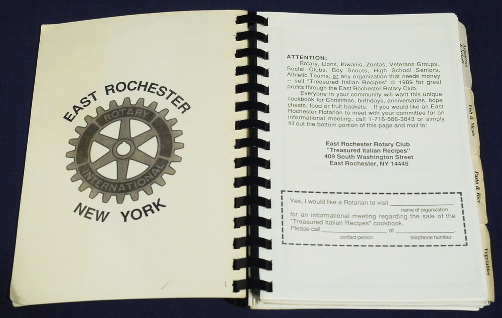 This is for a Cookbook: Treasured Italian Recipes by Miele Calabrese Battaglini . Spiral bound Softcover book, published by East Rochester Rotary Club, dated 1989 in front; approximately 8-5/8 in. by 6-5/8 in.; 202 pages + appendix. Good to Very Good condition, light wear, a few minor stains, see also pictures. Buyer to pay $5.00 for shipping and handling for U.S. address. We ship worldwide. International costs to be determined. Please click on 'See Details' for quote. We combine shipping if possible. Please take the time to read the following: Payment should be received within 3 days of purchase. We only ship to the address shown on the paypal payment. Because we are selling fresh items from estates, barns, etc., expect signs of wear and usage appropriate with the age of such items. We usually take multiple photographs of an item. Please check for a second row of photos, they often are there but can be overlooked. Photographs are part of the description and show all that is included. We photograph and accurately describe every item as to its condition and authenticity to the best of our ability. If you have any questions, please let us know. We often have similar items available, so please see our Other Items , or go to our 'ewkauctions' ebay store .