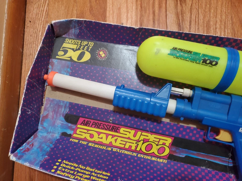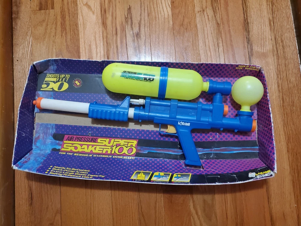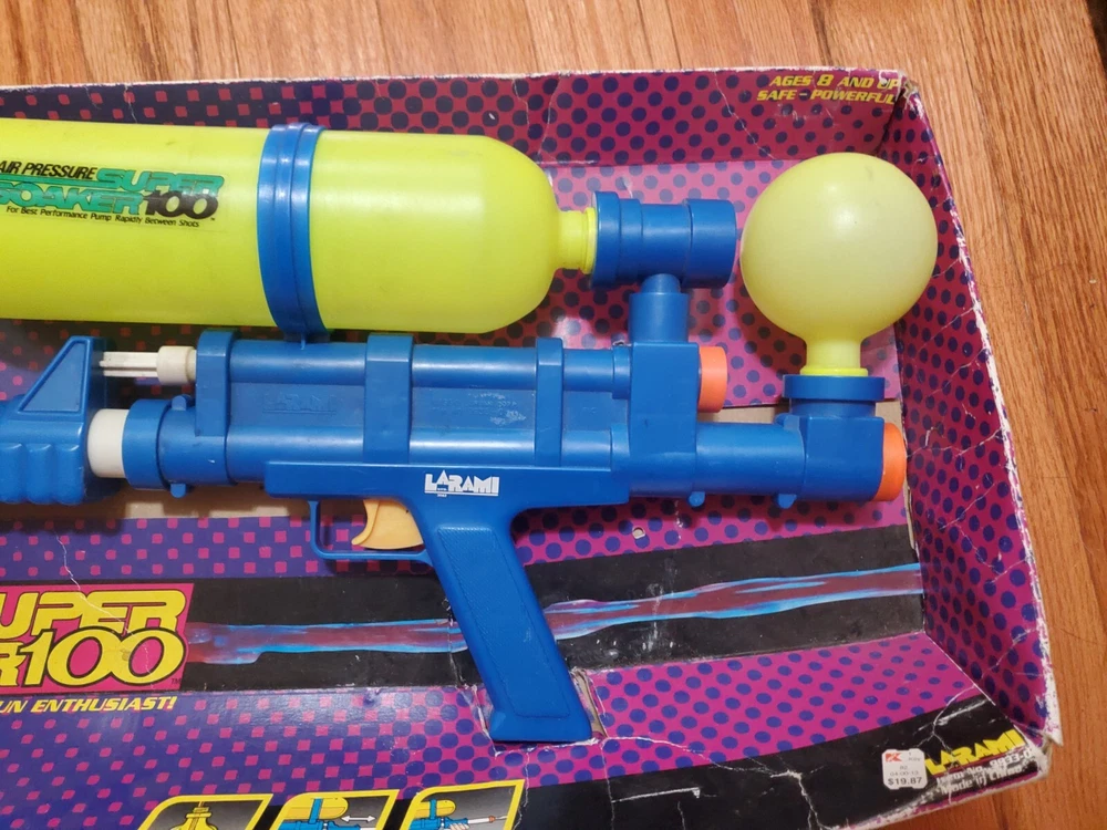 Vintage 1990 Larami Air Pressure Super Soaker 100 Water Gun Original Packaging