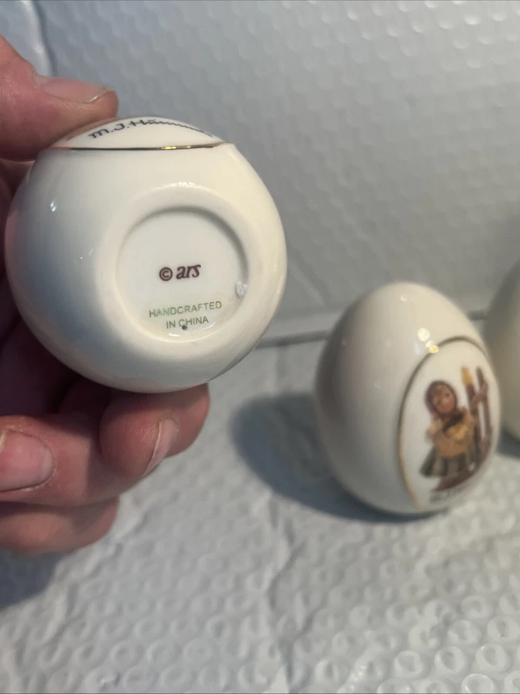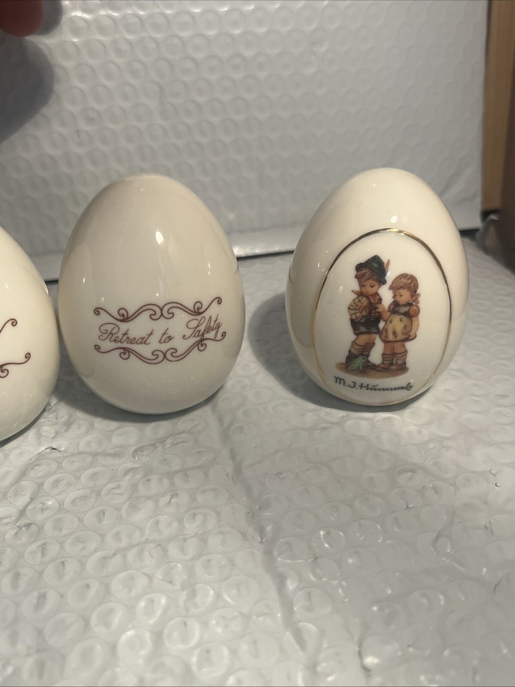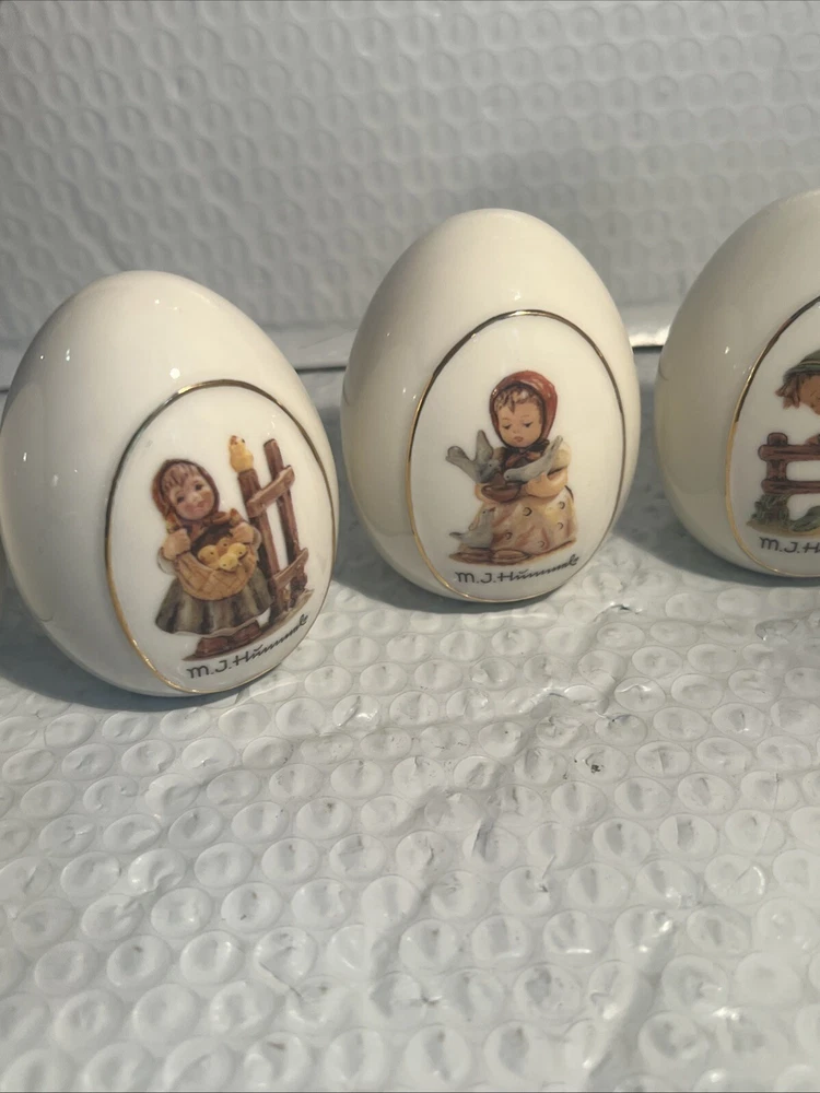 We Strive for nothing less than 5 Star FeedBack and 100% satisfied buyers! If for any reason you are not completely satisfied with your purchase before leaving feedback Please contact us with any questions or concerns. 1990's Danbury Mint Set of 5 - MJ HUMMEL 3.5' Easter EGG Figurines Condition: EXCELLENT condition see photos original . If there is anything wrong with the item or not as described, please contact me as soon as possible. Item is for sale as it came to us. All items pictured are included in auction. No other accessories are included in auction. please read our descriptions and check our pictures for the best item explanation before purchase. Please read the item description and look at the photos carefully before bidding We will describe the item to the best of our ability. PLEASE ASK QUESTIONS PRIOR TO BIDDING. WE WILL BE MORE THAN HAPPY TO ANSWER QUESTIONS THE BEST WE CAN Buyer assumes responsibility for all shipping and processing charges. THIS AUCTION IS FOR 1 (one) item unless otherwise specified. Bchanes27 reserves the right to end any auction at anytime! All of our items will typically ship within 1 Business day After payment is confirmed. WE ONLY ACCEPT PAYMENT THROUGH PAYPAL AND ONLY SHIP TO U.S. ADDRESSES Except Hawaii, Alaska and Puerto Rico. Be sure to check out our other items and save us as a favorite seller! Keep an eye on our auctions, you never know what we might have! We appreciate you looking at our items, Good luck and Happy Bidding