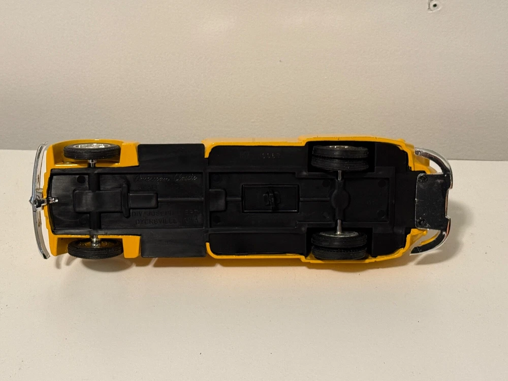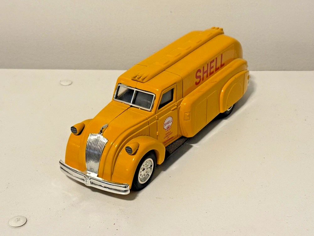 The vintage 1993 ERTL Shell Company of California Oil Tanker Truck Bank is a diecast model made in the United States. It is part of the American Classics series and features a yellow color scheme. This collectible toy vehicle is designed as an oil tanker truck and serves as a bank as well, making it a unique and versatile addition to any collection. Perfect for both boys and girls, this ERTL truck captures the nostalgia of classic American toy vehicles from the early 1990s.