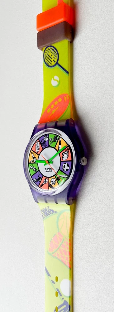 Step back in time with the Vintage 1994 Swatch Gent CHEERLEADER GV107, a timeless piece that embodies the spirit of the '90s. TESTED - Condition: Good New Renata Battery will be replaced before shipping.