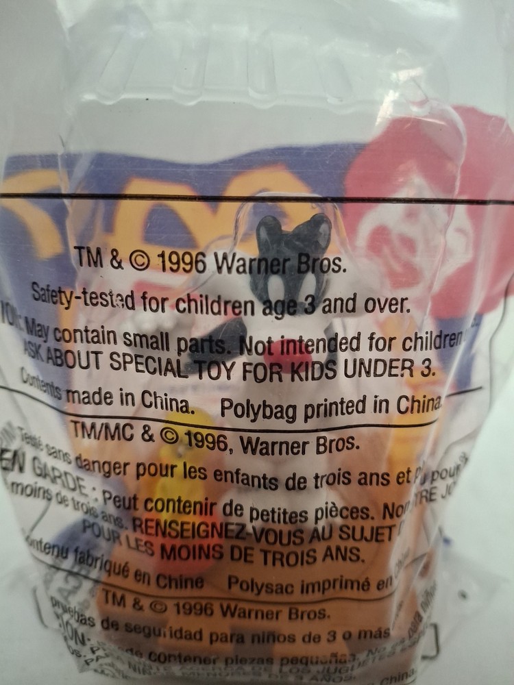 Brand:McDonald'sModified Item:NoCountry/Region of Manufacture:ChinaAge Level:3-4 Years, 4-7, 8-11 Years, 12-16 Years, 17 Years & UpCalifornia Prop 65 Warning:N/ACharacter Family:Space JamYear:1996Restaurant:McDonald'sRecommended Age Range:3 Years +