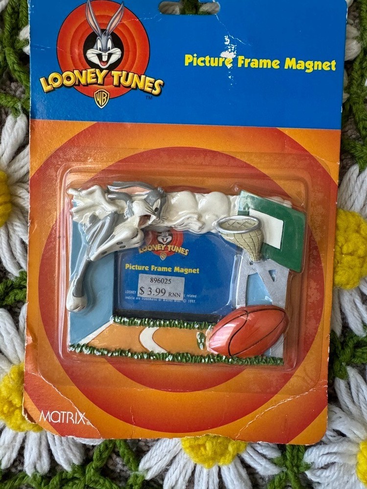 Looney Tunes Dead Stock Bugs Bunny playing basketball space jam magnetic photo frame Good, unopened condition Warner Brothers 1997
