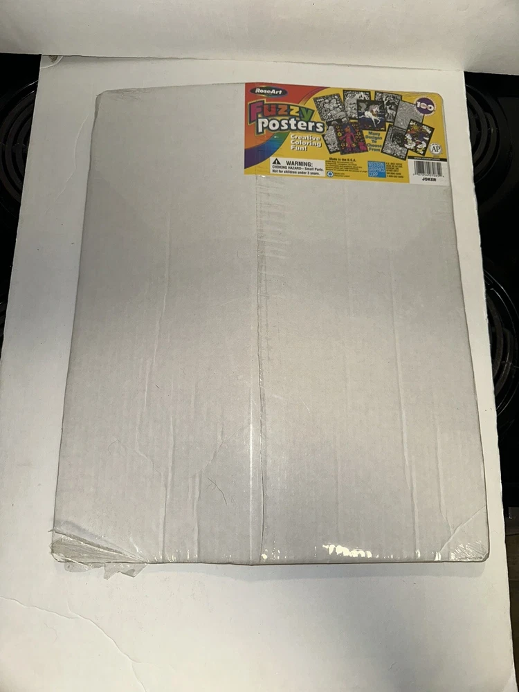 Add a touch of vintage Hollywood to your home decor with this 1997 RoseArt Joker fuzzy velvet poster. Measuring 16 inches by 20 inches, this poster features the iconic Joker character and comes with washable markers for you to create your own unique design. Perfect for crafts and home arts enthusiasts, this item is a must-have for any Joker fan. Whether you hang it in your bedroom or use it as a centerpiece for your living room, this poster is sure to add a pop of color and personality to your space. Poster is new, unused and comes from a smoke free home.