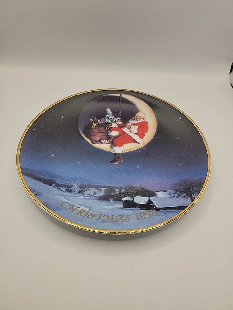 This Christmas collector plate features a beautiful winter scene with a sleeping moon and the words "Greetings From Santa" inscribed on it. The plate has a diameter of 8 inches and is made by Avon, a well-known brand in the collectibles industry. This decorative piece is perfect for any Christmas occasion and will make a great addition to any collection. The plate was manufactured in China and is part of the Avon product line. It is a multicolor collector plate that is sure to catch the eye of anyone who sees it. The California Prop 65 Warning does not apply to this item. This is a must-have for any collector of decorative plates, and it makes a great gift for anyone who loves Christmas decor.