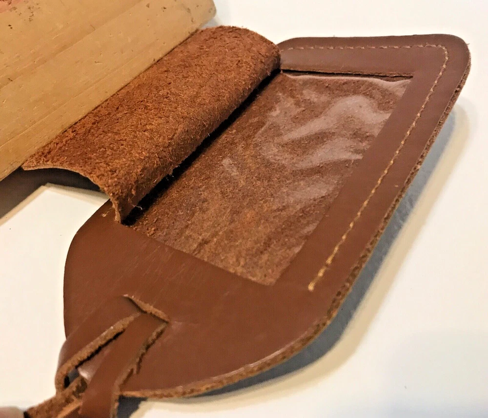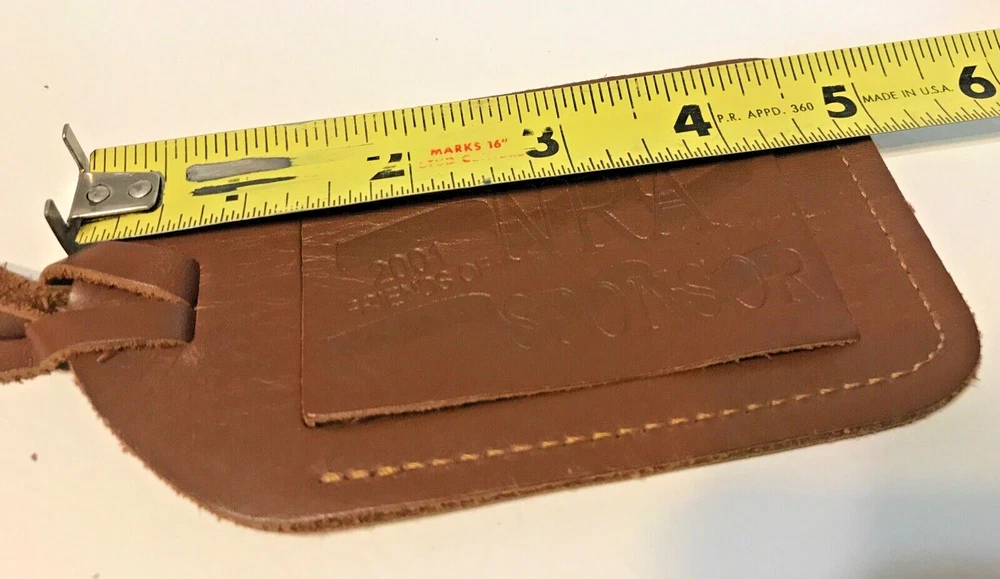 Vintage 2001 NRA Tan Leather Luggage ID Address Business Card Holder Hanging Showing Light Use Very Good to Excellent Condition Holds a Standard Business Card Great for Luggage, Gun Cases and Bags, Briefcases or Anything you want to mark with your Name & Info Measures 5" Long 2 3/4" Wide with Long 6" Leather Hanging Loop From my Parents or other Family Members Estates Don't Want to Wait or Bid or Spend Quit that Much Please Make Us an Offer All reasonable offers will be considered and receive a response Shipped Well Padded & Secure via USPS Ground Advantage or Priority Mail or Priority Flat Rate with Tracking & Ins. And we do our Best to Ship in One Day or Less Our photos are the most important part of our listing Tag Card Holder you see is the one you will get and are part of the Description, LOOK , They are 1000's of words we try to offer many from all sides. Please check them closely and let us know if we can give any additional info. We don't Clean, Shine or Oil anything all items are just as we found them, more fun that way and you get a better idea of what you are getting as it is easy to make a tired item look like a Million Bucks, you are seeing it without or before its all Dolled up that's on you Always willing to Combine to save you money on postage Thanks for the Look and Consideration Returns are accepted when item is not as described, but if item has any additional flaws or shows use the buyer pays return shipping