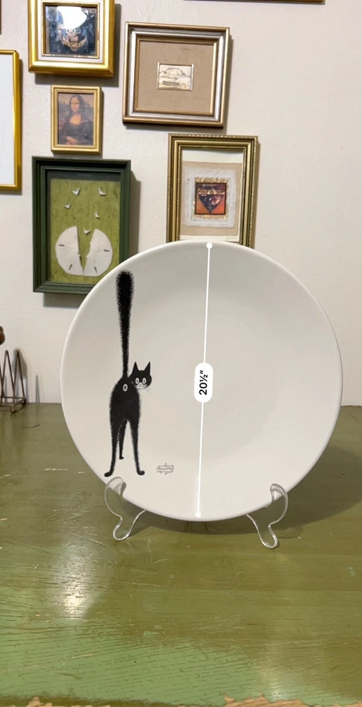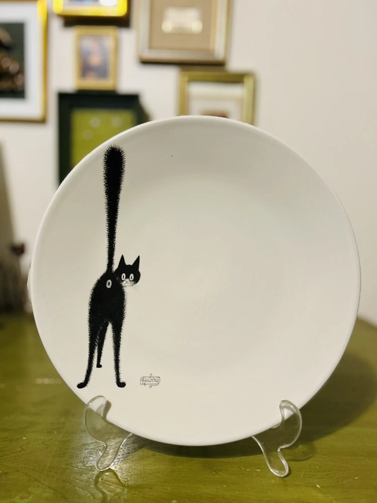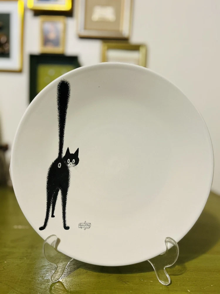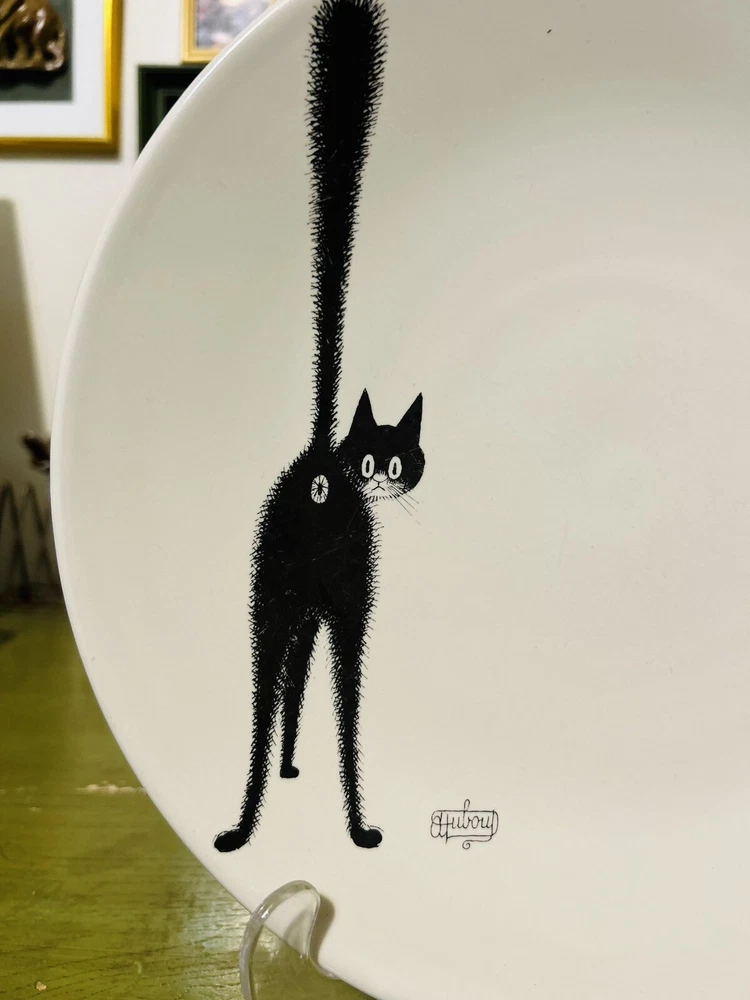 Add a touch of whimsy to your collection with this vintage 2002 Albert Dubout "The Third Eye" black cat collector plate from France. The round plate measures 11 inches in diameter and features a unique pattern and design, perfect for all occasions. Made of high-quality ceramic, this collector plate is a must-have for any cat lover or art deco enthusiast. The item is in excellent shape and comes from a smoke-free environment. Beautiful Art piece (R10)