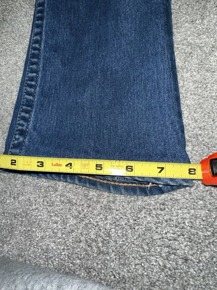 This pair of vintage True Religion jeans is a must-have for any fashion-forward man. The medium wash denim with a solid pattern and button closure is perfect for any season, be it winter, summer, fall, or spring. Made of high-quality cotton with a denim fabric type, these jeans are both comfortable and durable. Featuring a slim straight fit and a 32-inch waist size, these jeans are designed to flatter your figure. The zipper accents, preppy logo theme, and slimming features make these jeans the perfect addition to your wardrobe. Made in the United States in 2003, these jeans are a rare find that will surely turn heads.