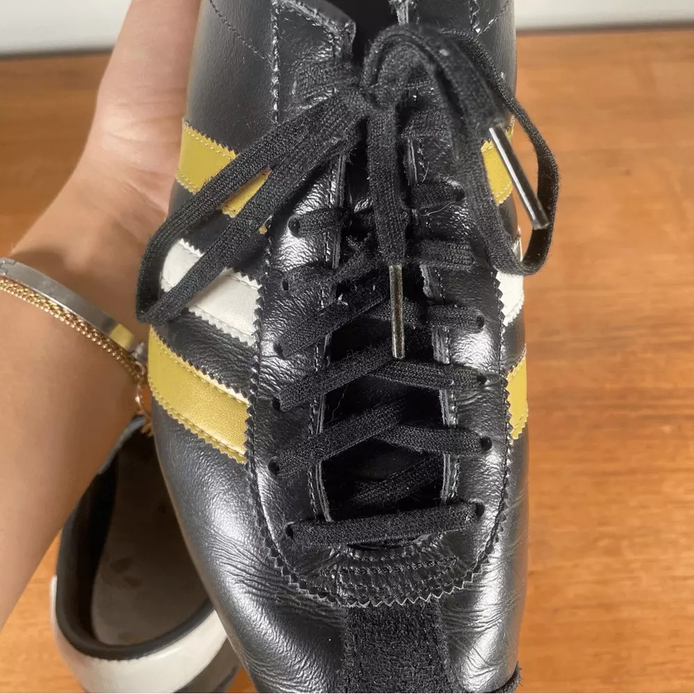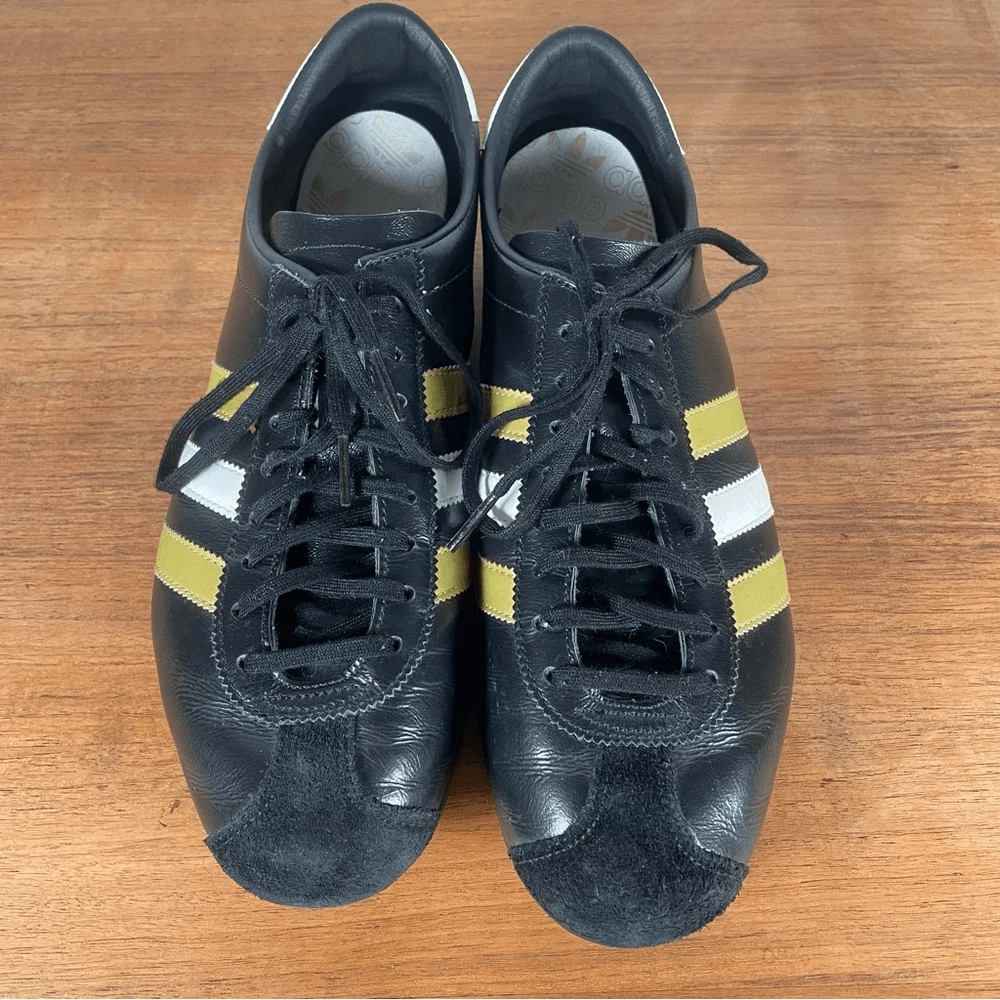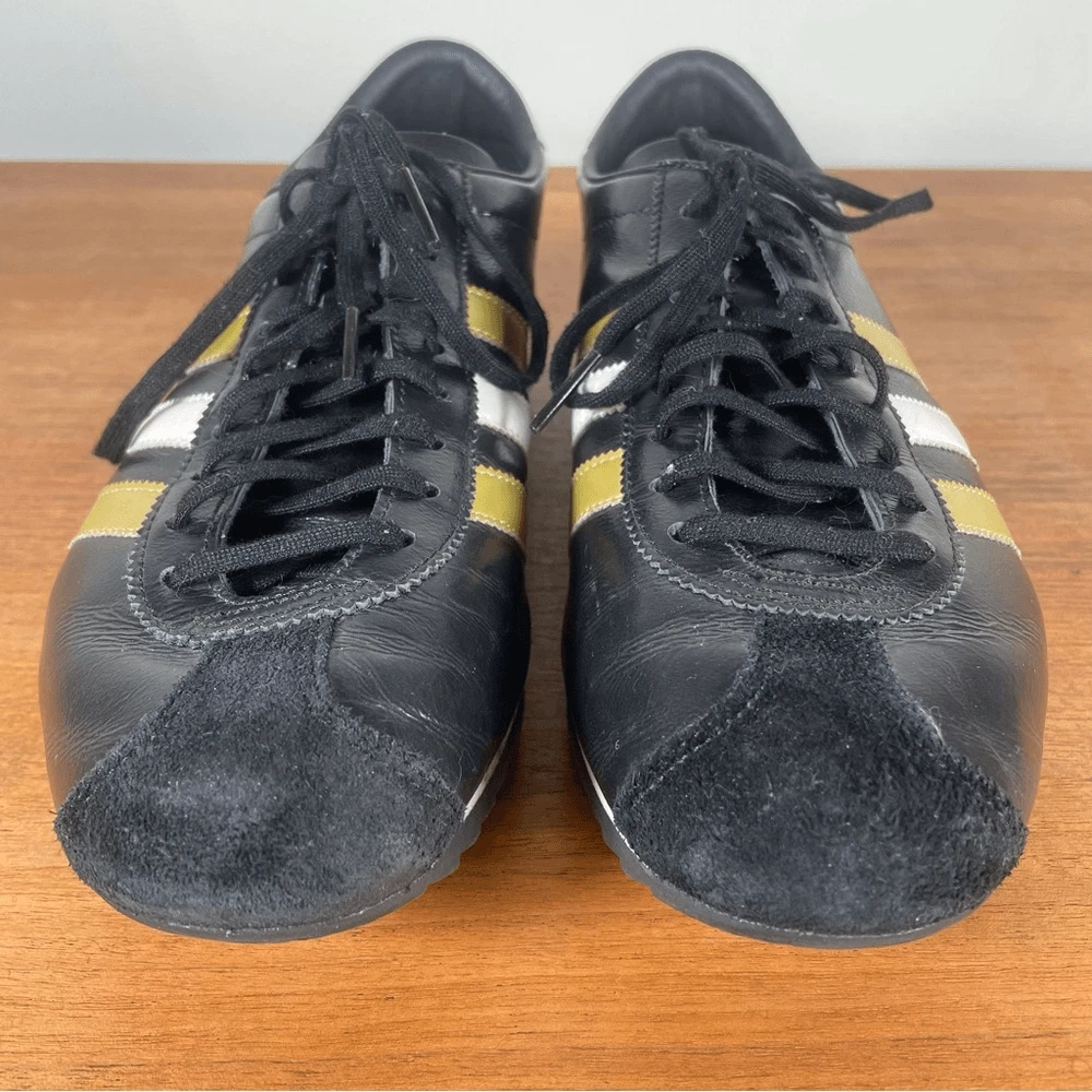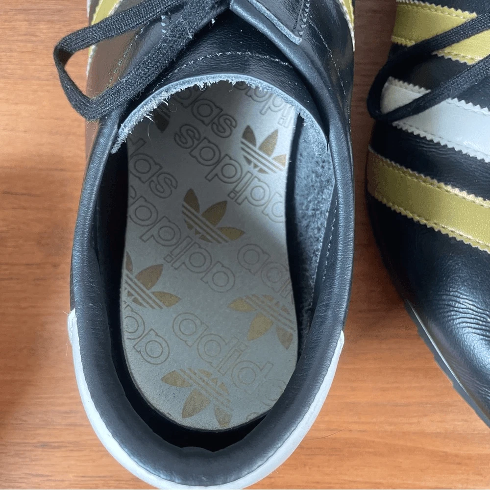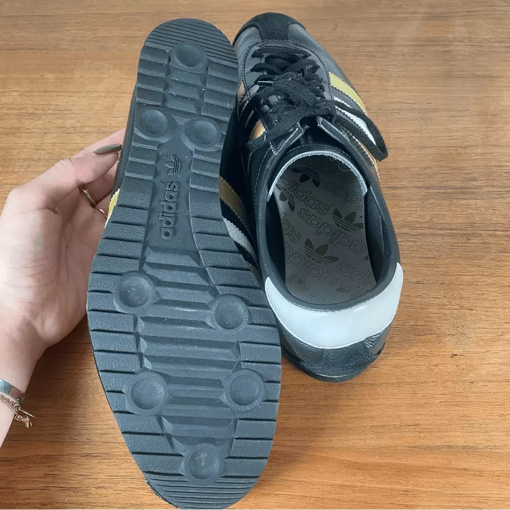 Black adidas antelope sneaker 2004 black with white and gold stripe. Relatively good condition, insoles are coming away as you can see but soles are in good shape. Great classic shoe rare and hard to find.