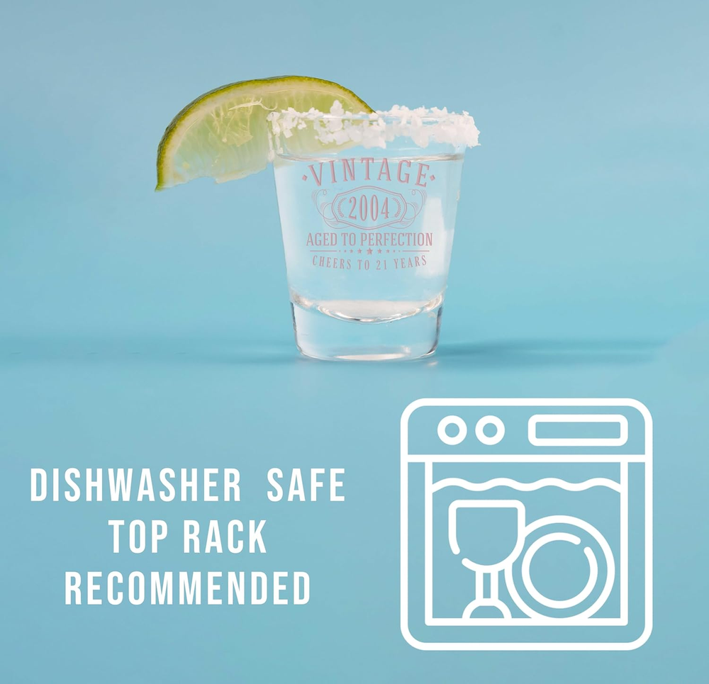 Store New Arrivals Add to Favorite View Feedback Contact Fast deliveries to the customer's home Quality customer service John Make the customers happy! Vintage 2004 Rose Gold Printed 1.75Oz 1Pk Shot Glass - Happy 21St Birthday Gifts Women Men, Cheers to 21 Years, Turning 21 Woman Decorations Decor, Anniversary Bday Party Favors, Best Gift Ideas 1.0 Description This shot glass will hold 1.75 ounces and is a perfect gift for someone who has everything. Mom and Dad are always hard to shop for, or pick up a glass for your brothers, sisters, uncles, aunts, and friends. Everyone will love this shot glass, it’s a gift built to last. Printed design is high quality and dishwasher safe, making these easy to care for. This shot glass with the vintage design is a gift that will make any birthday more special. Height: 2.38 inches, Diameter: 2 inches - Perfect size for a good time with friends and family that enjoy spirits, tequila, vodka, and other liquor. It can also be used as a measuring glass for cocktails. This vintage premium shot glass is made in Fayetteville, Arkansas, by a dedicated local team. We strive to give anyone turning 21 a special way to celebrate. Wish the guy or girl in your life a very happy birthday with this great gift. Gift wrap ready and ideal for lovers of espresso, mixed shooters, and shots. A shot glass makes a playful touch for cake decorations and adds charm to gift baskets. It’s perfect for holding small treats or enhancing dessert presentations with a unique flair. Product Description 21st Birthday Vintage Printed Shot Glass Vintage ‘2004’ Design – The bold, stylish print gives this shot glass a unique, nostalgic look, making it a perfect keepsake for anyone celebrating their 21st birthday in style. Perfect for Gifting – A thoughtful, fun, and practical gift for anyone turning 21. It’s a unique way to celebrate the milestone with something they can cherish. Great for Party Favors & Decorations – Whether used as a toast glass, centerpiece, or party favor, this shot glass adds charm to any 21st birthday celebration. Personalized Shot Glasses Add to Cart Add to Cart Add to Cart Add to Cart Add to Cart Add to Cart Customer Reviews 4.7 out of 5 stars 919 4.7 out of 5 stars 126 4.4 out of 5 stars 67 4.7 out of 5 stars 31 4.9 out of 5 stars 38 5.0 out of 5 stars 11 Price $8.99 $ 8 . 99 $18.99 $ 18 . 99 $18.99 $ 18 . 99 $18.99 $ 18 . 99 $18.99 $ 18 . 99 $18.99 $ 18 . 99 Digitally Printed ✘ ✔ ✔ ✔ ✔ ✔ Pad Printed ✔ ✘ ✘ ✘ ✘ ✘ Personalization Available ✘ ✔ ✔ ✔ ✔ ✔ Multi Quantity Available ✔ ✔ ✔ ✔ ✔ ✔ Full Color Customization ✘ ✔ ✔ ✔ ✔ ✔ Gift Box Available ✘ ✔ ✔ ✔ ✔ ✘ Reusability Reusable Unit Count 1.0 Count Style 2004- Rose Gold Number of Items 1 Color Rose Gold Material Glass Capacity 1.75 Fluid Ounces Theme Birthday Item Weight 4.2 ounces Shape Rectangular Material Feature Dishwasher safe Occasion Birthday Special Feature Dishwasher Safe Product Dimensions 2"W x 2.38"H Included Components Shot Glass ABOUT US We offer the best prices around on high quality products. Our E-store includes media such as books, movies, music and games while offering electronics, toys, sporting apparel, clothing, tools, general home, garden items and more. SHIPPING We are always working hard to ensure your package arrives as soon as possible. Please understand that some factors like weather, high postal traffic, and the performance of shipping companies are outside of our control. We offer free shipping to the lower 48 states and ship within 2 business days of payment, usually sooner. We do not accept P.O. Boxes. Please provide a physical address. For shipping outside of the continental USA, we only use eBay's Global Shipping Program. The item is shipped to KY and then sent to the rest of the world. International customers are responsible for all duties and taxes. Continue to 'check out' to calculate costs for shipping the item to your country. Messages regarding eBay's Global Shipping Program MUST be directed at eBay EXCLUSIVELY. RETURNS We offer a 30-Day Return Policy on items in which you are not completely satisfied with. You have the option of a full-refund or an exchange of the item. No returns are available on items shipped outside of the USA PAYMENT We accept PayPal. CONTACT US This page content is yet to come Please ad us to your favorite seller and visit again later Thank You CUSTOMER SATISFACTION We try our very best to make sure every customer is completely satisfied. If there's a problem, message us! We're happy to help. WE ACCEPT