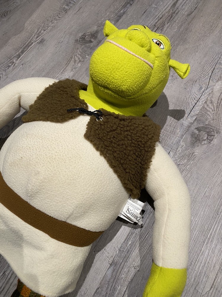 Embark on a nostalgic adventure with the Vintage Shrek 2 Plush, a 2004 collectible from DreamWorks that brings the beloved ogre to life in a jumbo 28” Cuddle Pillow form. Perfect for fans of all ages, this plush captures the charm of the iconic character with its vibrant green hue and detailed craftsmanship synonymous with Hasbro quality. Whether you're decorating a child's room or adding to a collector's treasure trove, this large plush is an ideal companion for anyone who holds a special place for the Shrek character family. Crafted in China, it stands as a testament to the enduring legacy of one of animation's most memorable creatures.