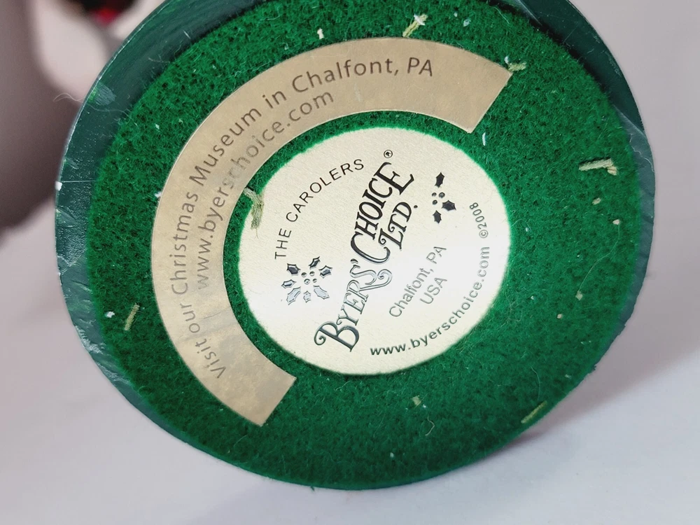 Material:Mixed MaterialsYear Manufactured:2008Type:CarolerTime Period Manufactured:2000-2009Handmade:YesPersonalize:NoBrand:Byers ChoiceCountry/Region of Manufacture:United StatesOccasion:ChristmasColor:Multicolor