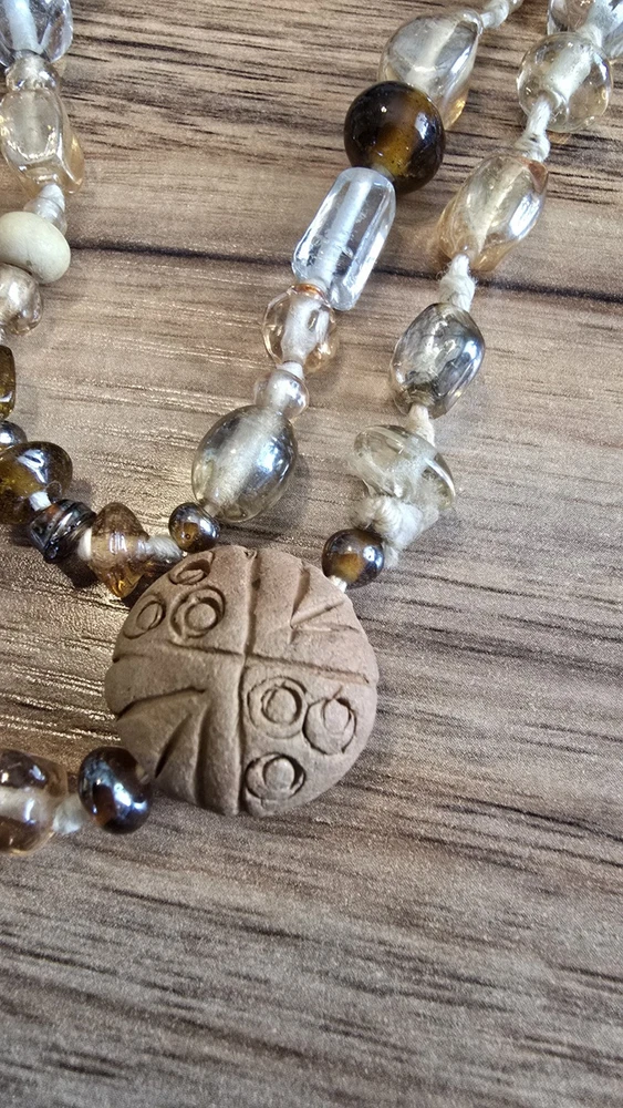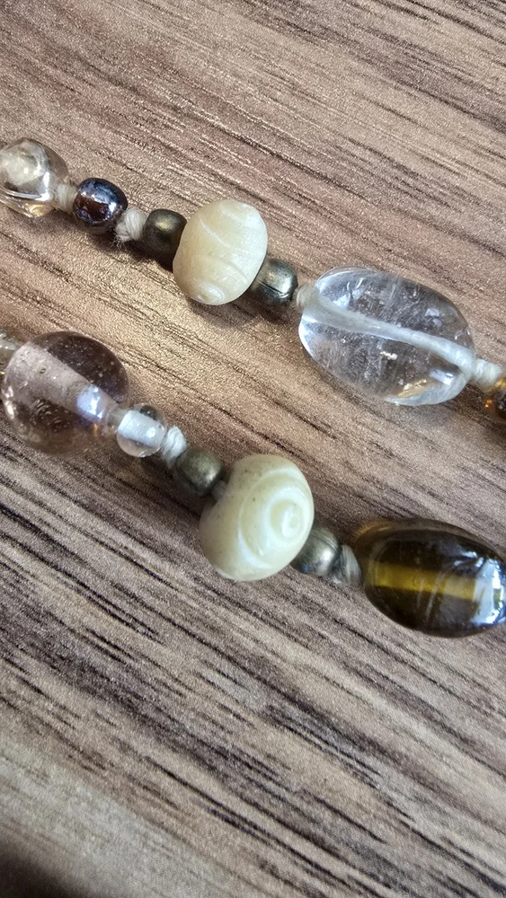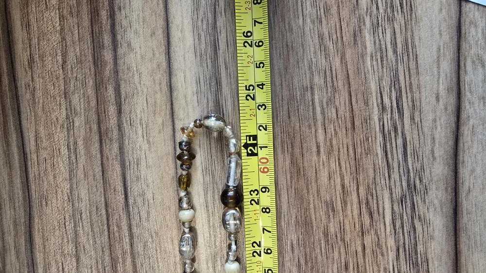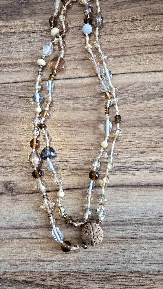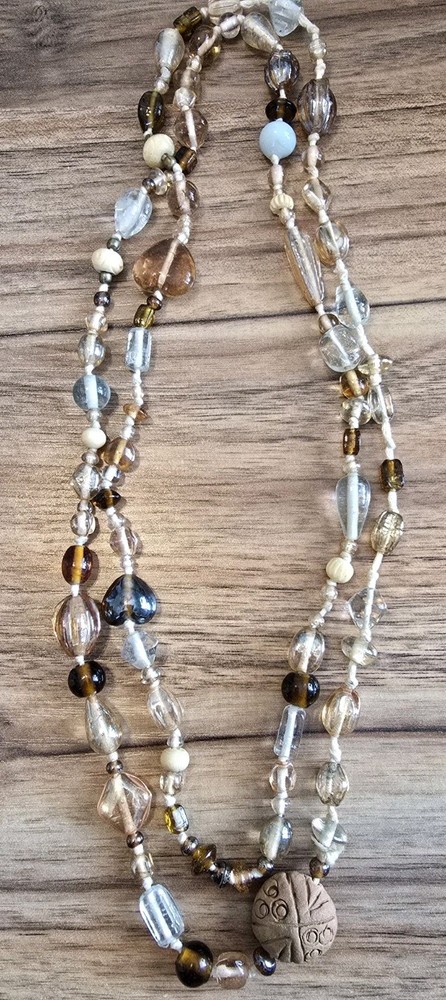 Adorn yourself with a touch of timeless elegance with this Vintage 24" Glass Beaded Necklace. Featuring a stunning array of multicolored glass beads, and podsible ivory, this piece is a testament to classic style and intricate craftsmanship. The necklace is complemented by a unique clay disk diffuser, adding a subtle, yet distinctive touch to the overall design. The necklace falls gracefully at 24 inches, providing a comfortable fit that complements any neckline. Each glass bead is carefully selected for its natural multicolor hue and is arranged in a pattern that ensures a good cut grade, catching the light beautifully. This unbranded, original vintage piece is a versatile addition to any jewelry collection, perfect for women who appreciate the charm of vintage accessories.