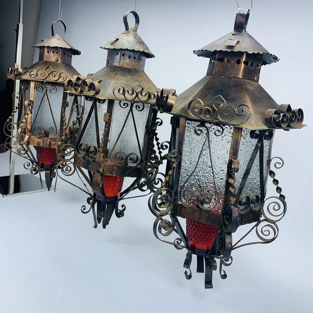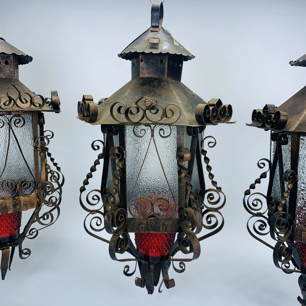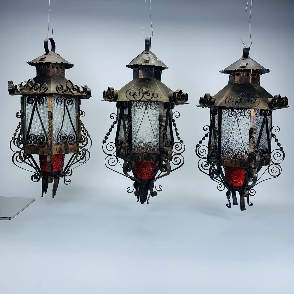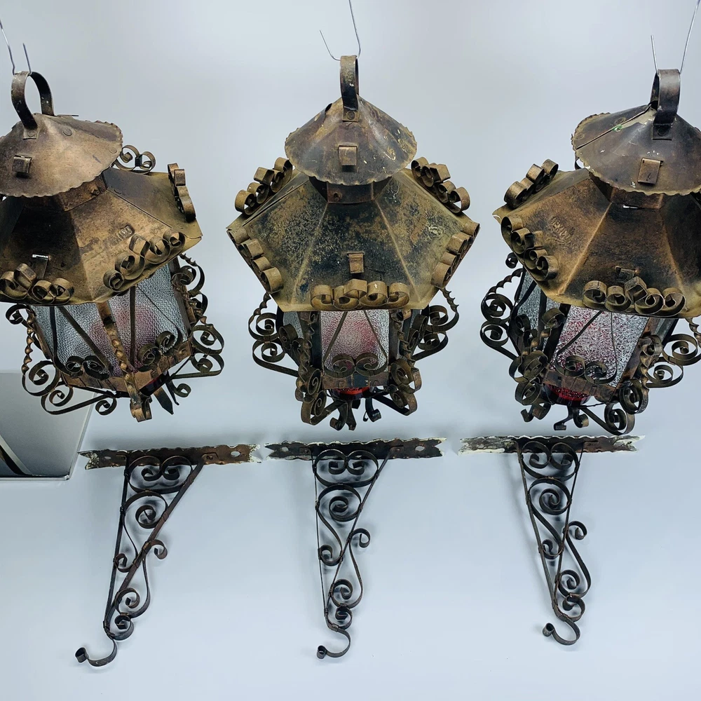 Vintage 3 Gothic Spanish Revival Hanging Light Fixtures Lanterns.. Shipped with USPS Ground Advantage.