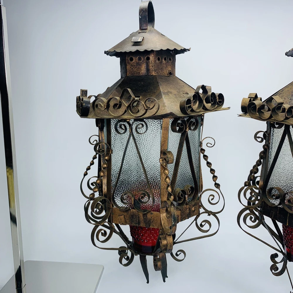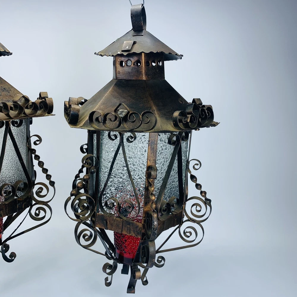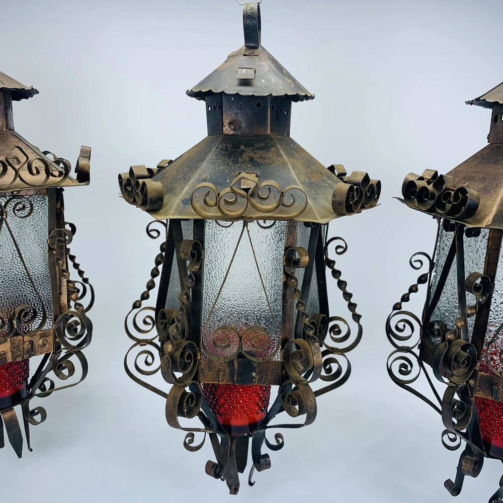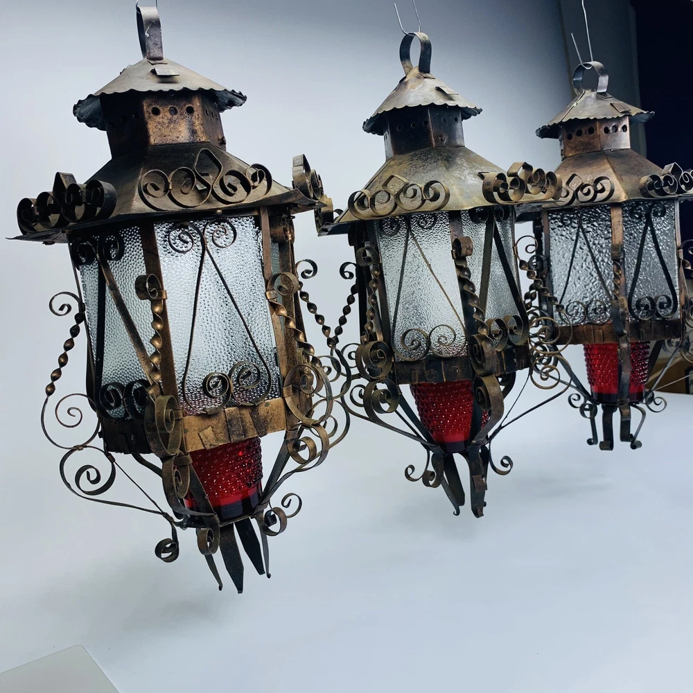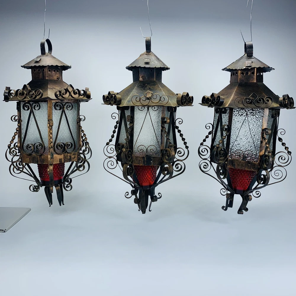 Vintage 3 Gothic Spanish Revival Hanging Light Fixtures Lanterns.. Shipped with USPS Ground Advantage.