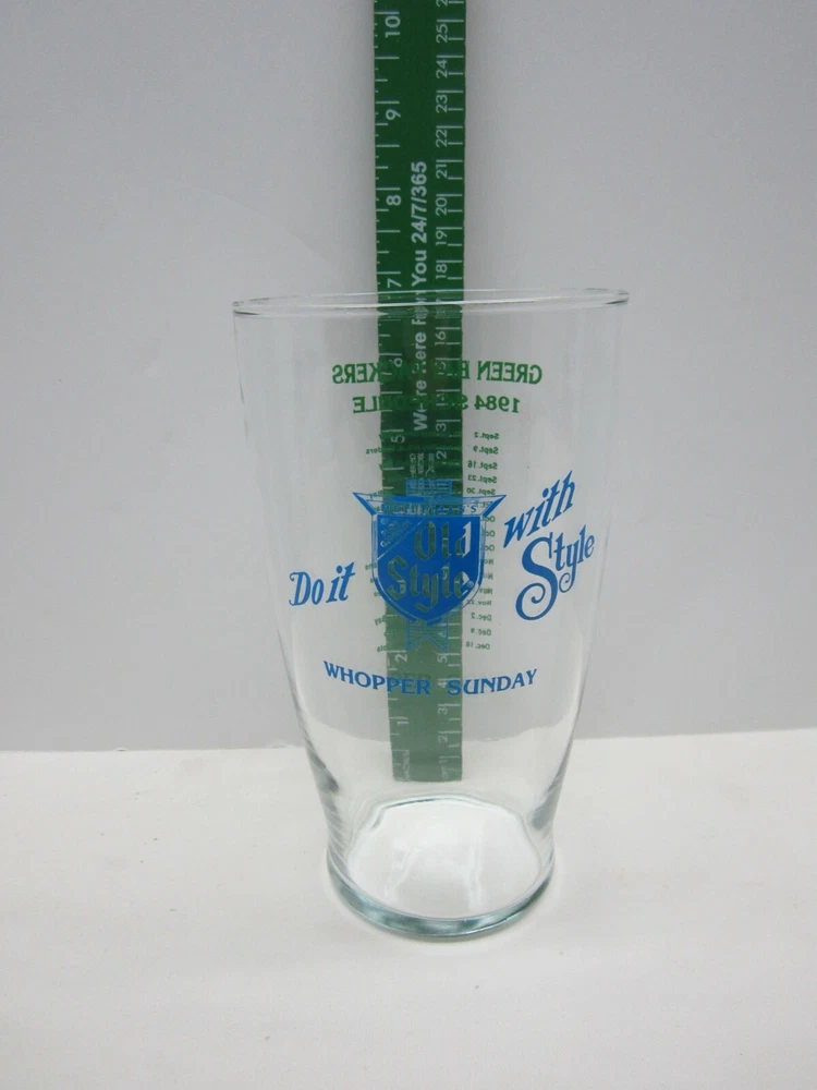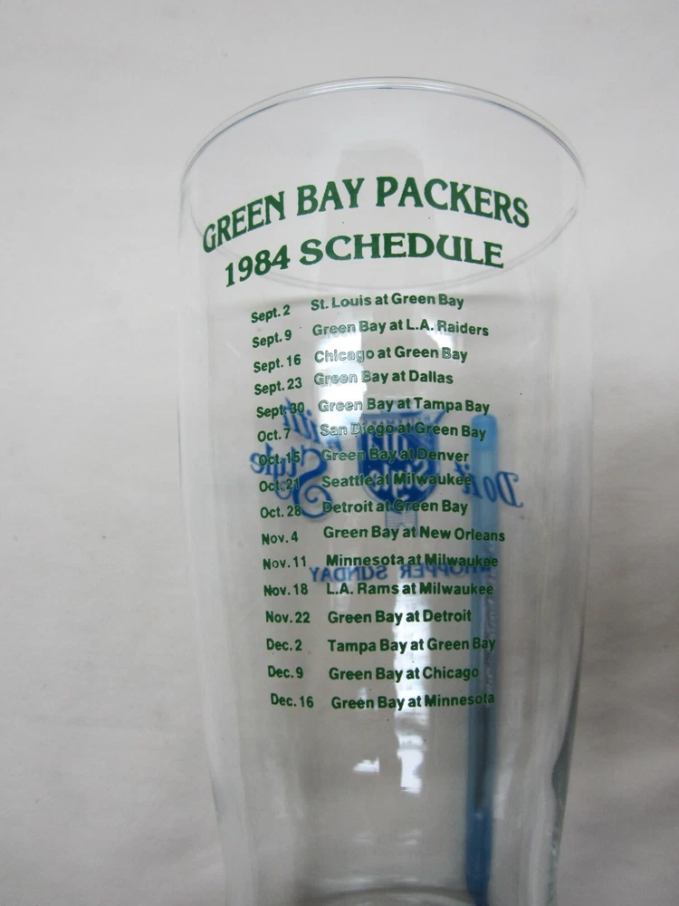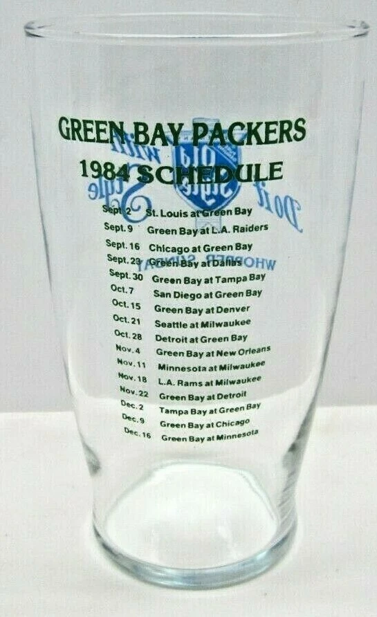 Vintage 32oz Old Style Whopper Sunday Green Bay Packers 1984 Schedule Glass